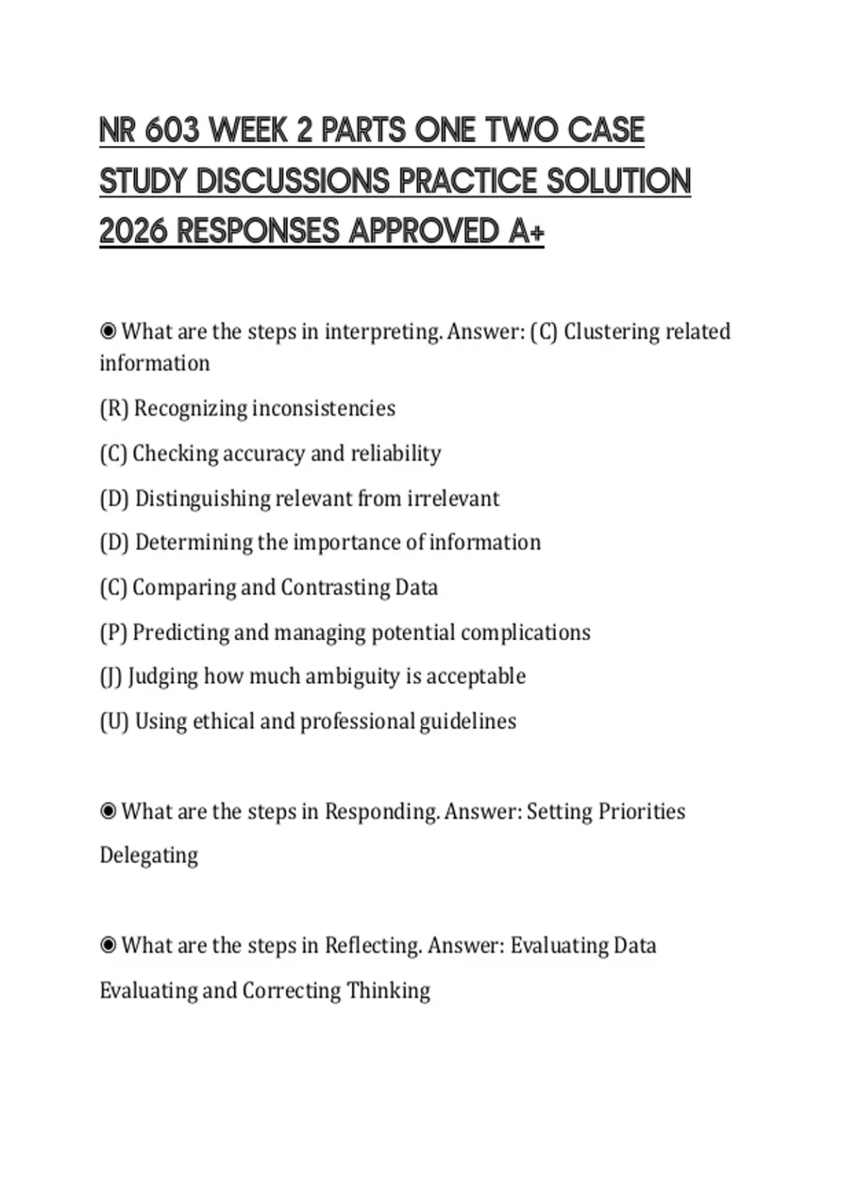 NR 603 WEEK 2 PARTS ONE TWO CASE STUDY DISCUSSIONS PRACTICE SOLUTION 2026 RESPONSES APPROVED A+