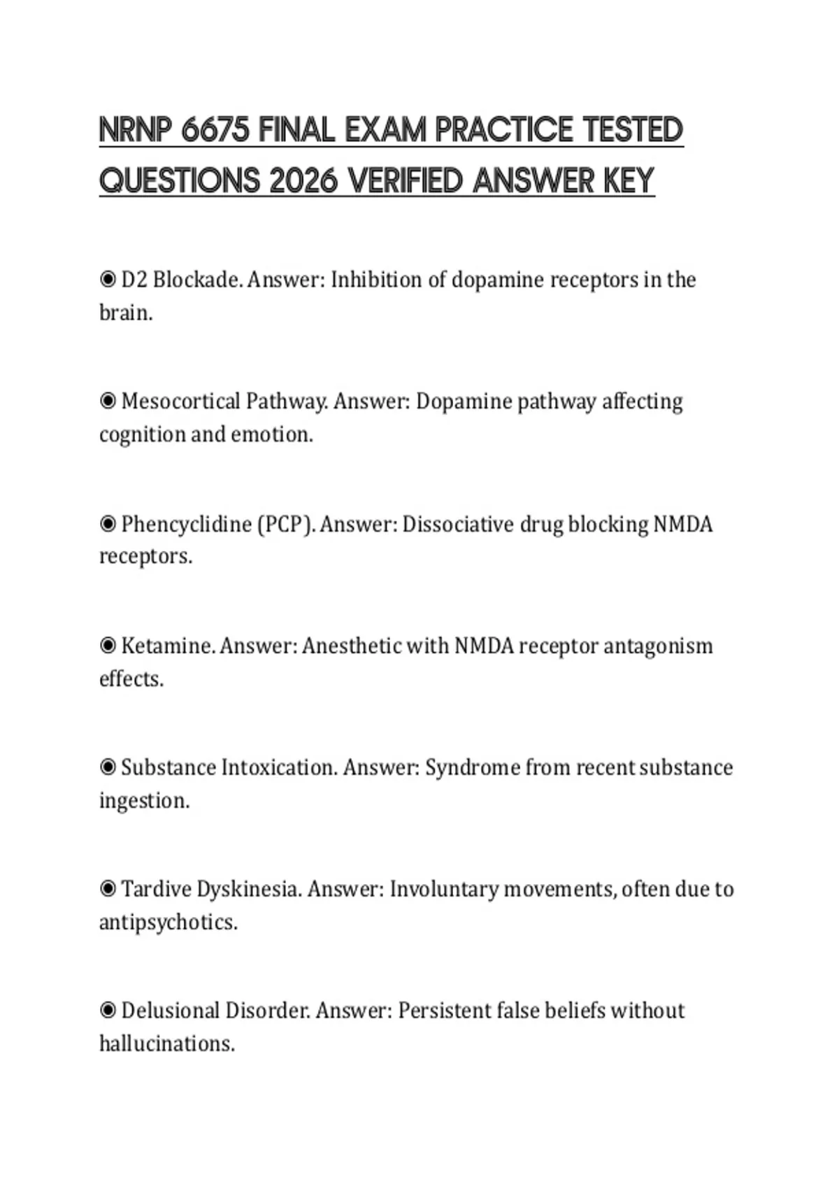 NRNP 6675 FINAL EXAM PRACTICE TESTED QUESTIONS 2026 VERIFIED ANSWER KEY