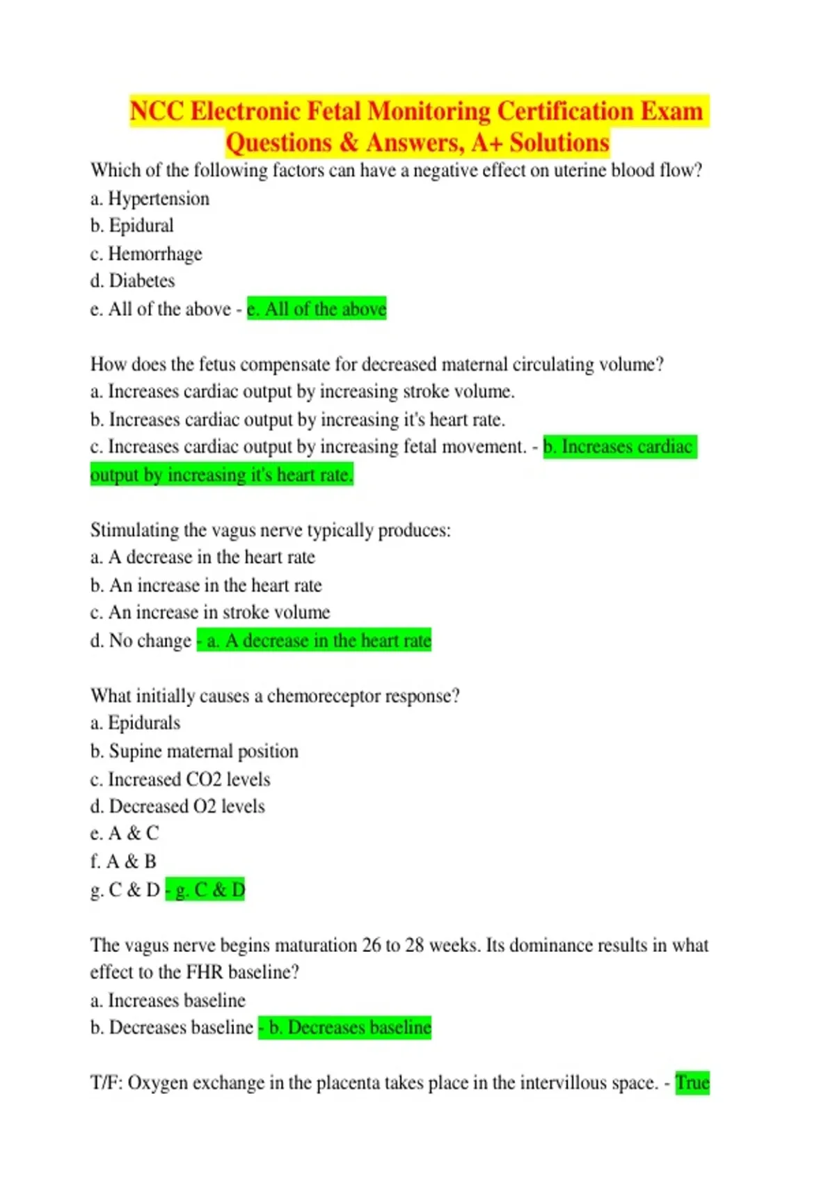 NCC Electronic Fetal Monitoring Certification Exam Questions & Answers, A+ Solutions