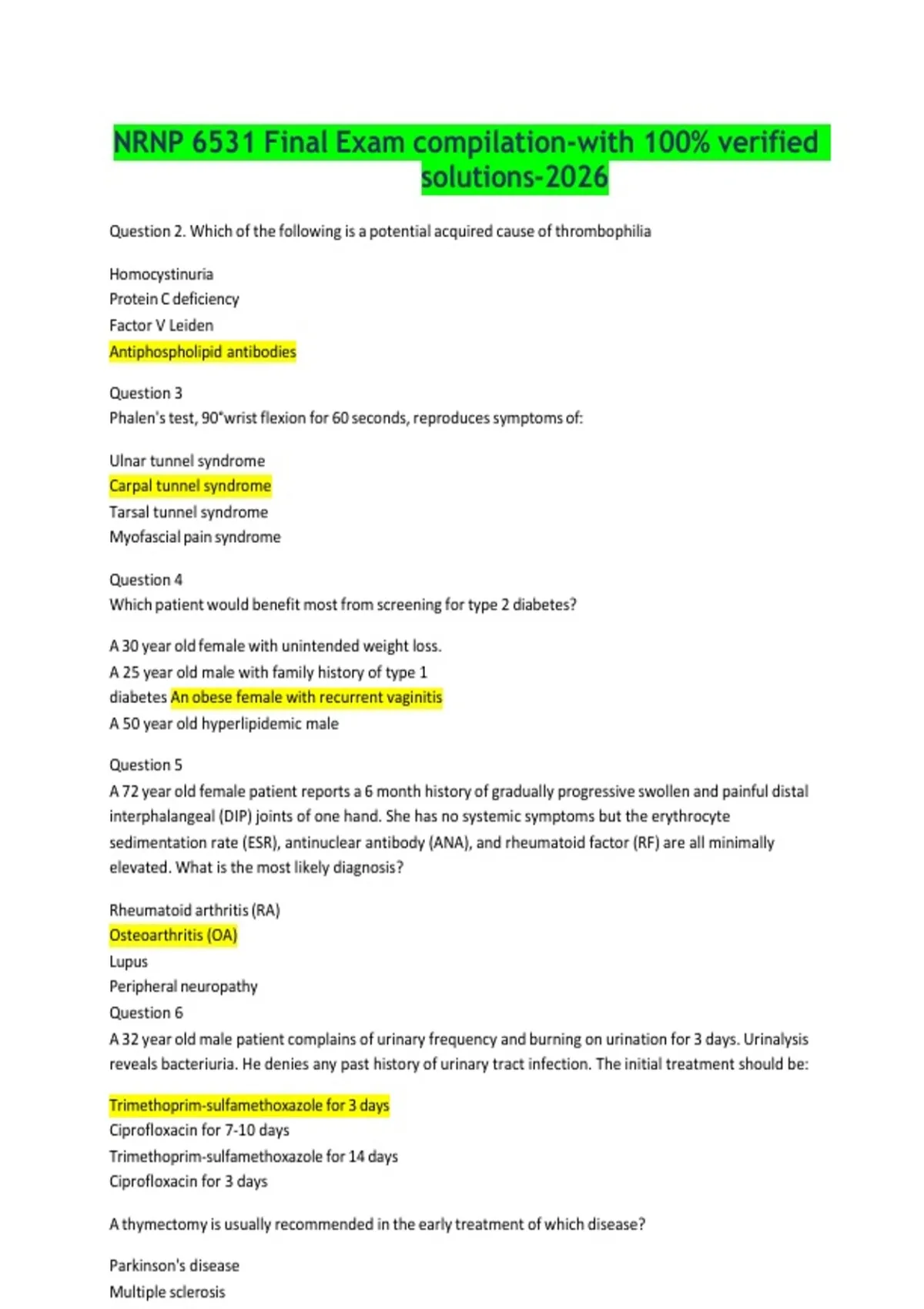 Question 2. Which of the following is a potential acquired cause of thrombophilia