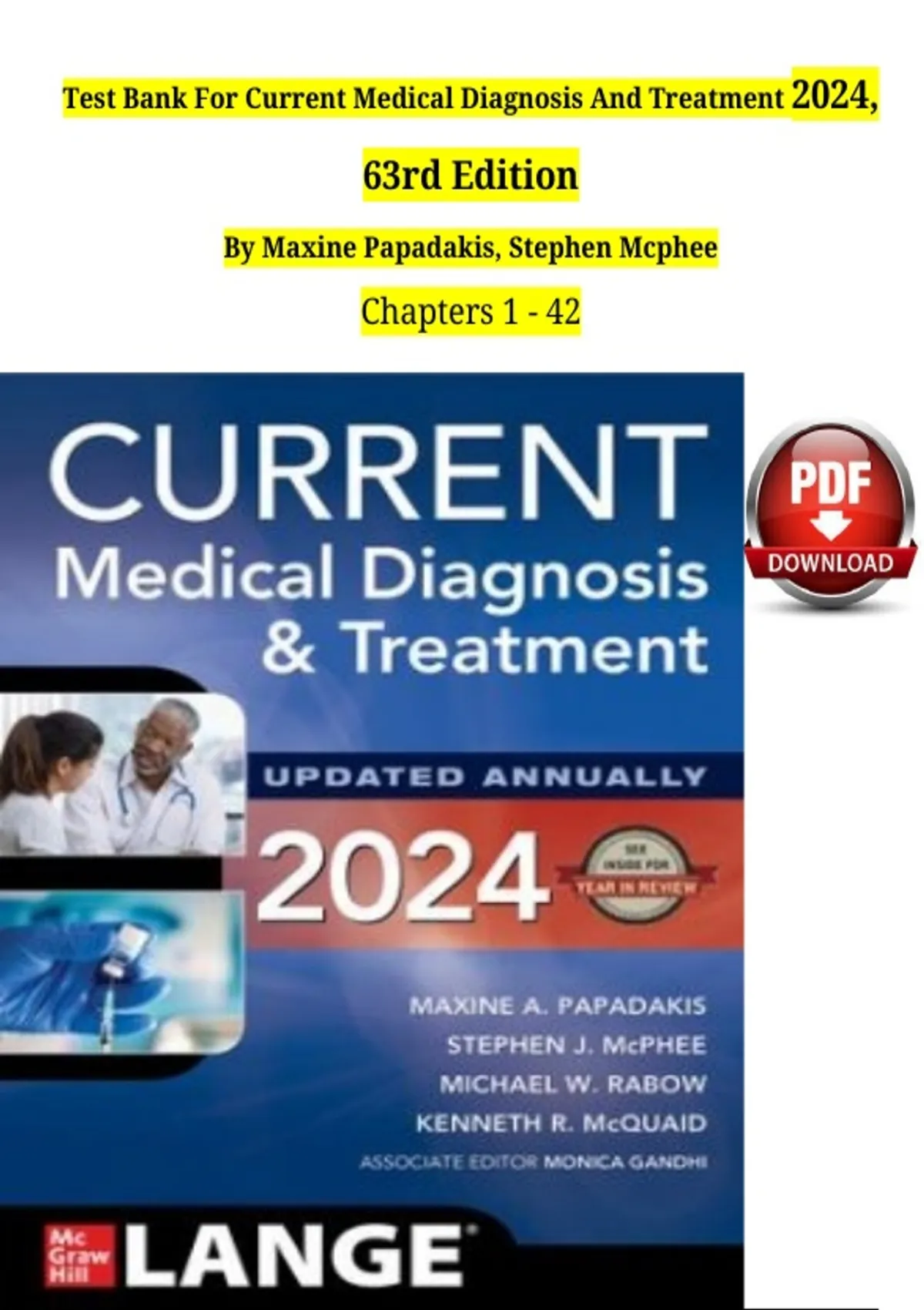 TEST BANK For Current Medical Diagnosis And Treatment 2025, 63rd Edition By Papadakis & Mcphee. All Chapters
