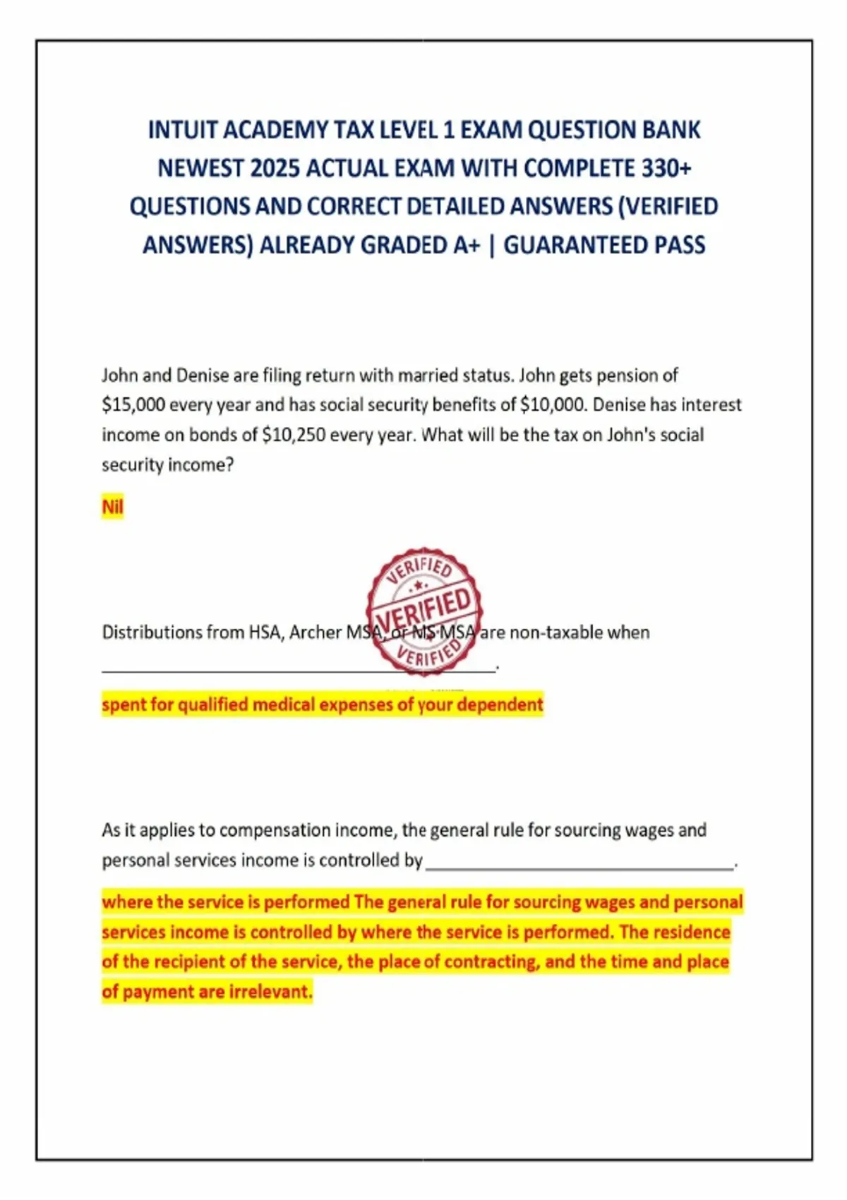 Intuit Academy Tax Level 1 – Exam Question Bank, 2026 updated edition with comprehensive practice questions.