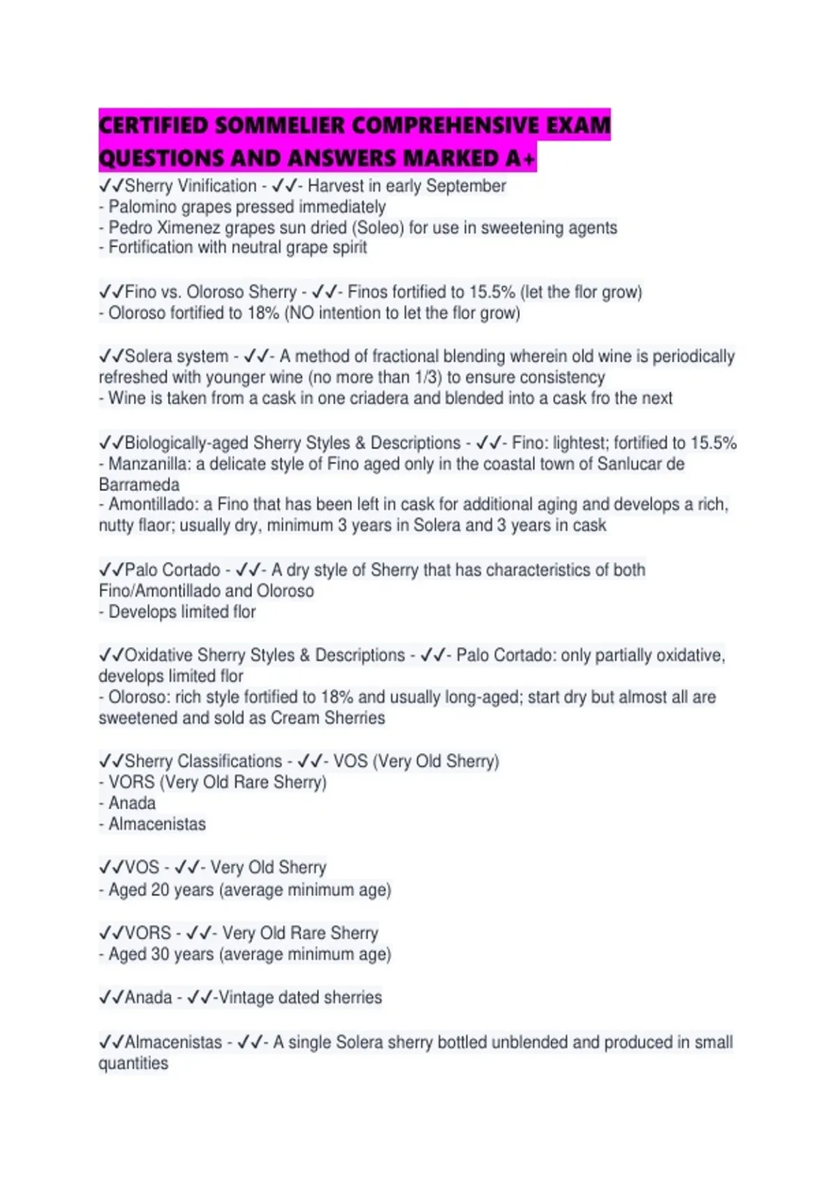 CERTIFIED SOMMELIER COMPREHENSIVE EXAM QUESTIONS AND ANSWERS MARKED