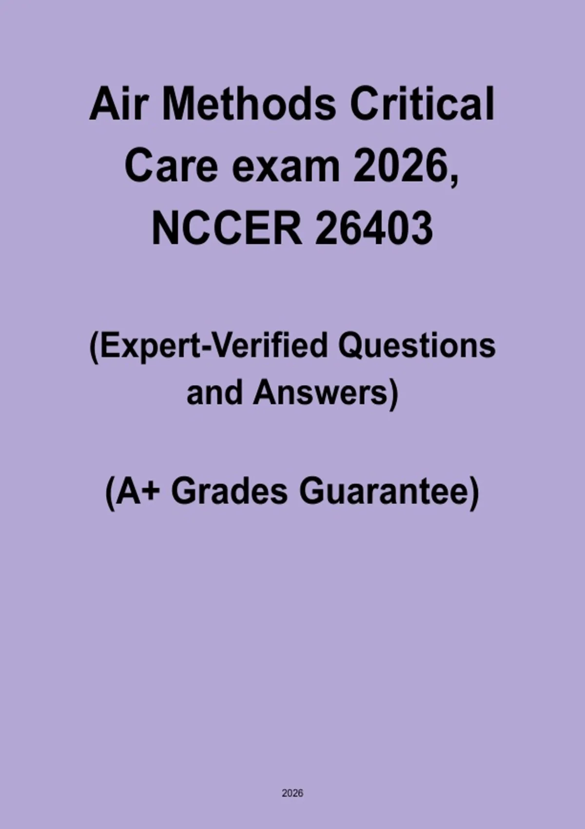 This Air Methods Critical Care Exam NCCER 26403 PDF is a focused study and practice resource for flight nurses and flight paramedics preparing for Air Methods critical care certification. Aligned with NCCER 26403 standards, it covers advanced airway management, ventilator support, hemodynamics, pharmacology, trauma, cardiac, and neurologic emergencies, delivering exam-focused review and practice to help candidates confidently pass the 2026 Air Methods Critical Care exam.