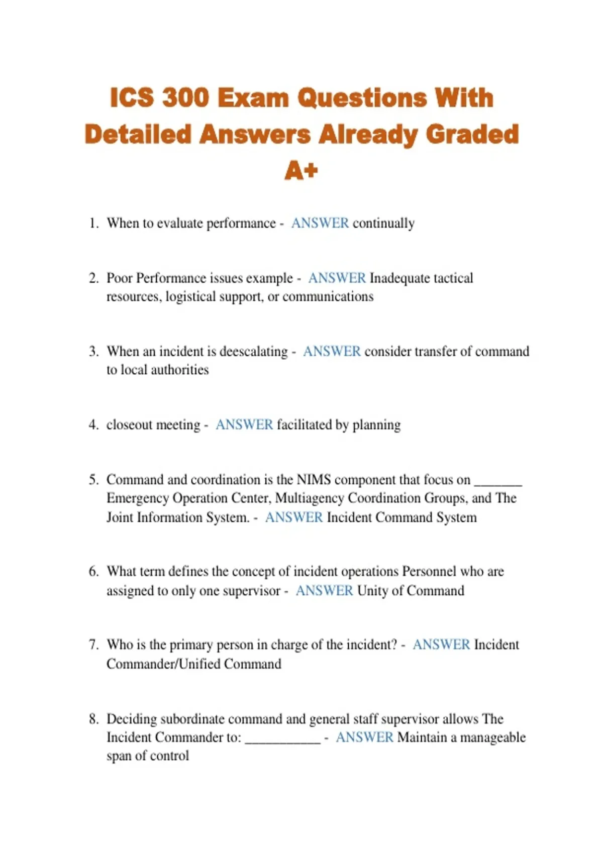 7. Who is the primary person in charge of the incident? - ANSWER Incident
