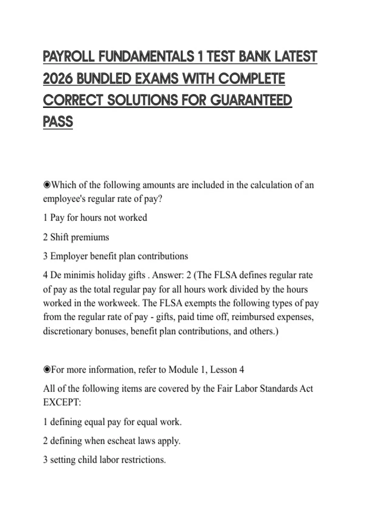 4 De minimis holiday gifts . Answer: 2 (The FLSA defines regular rate