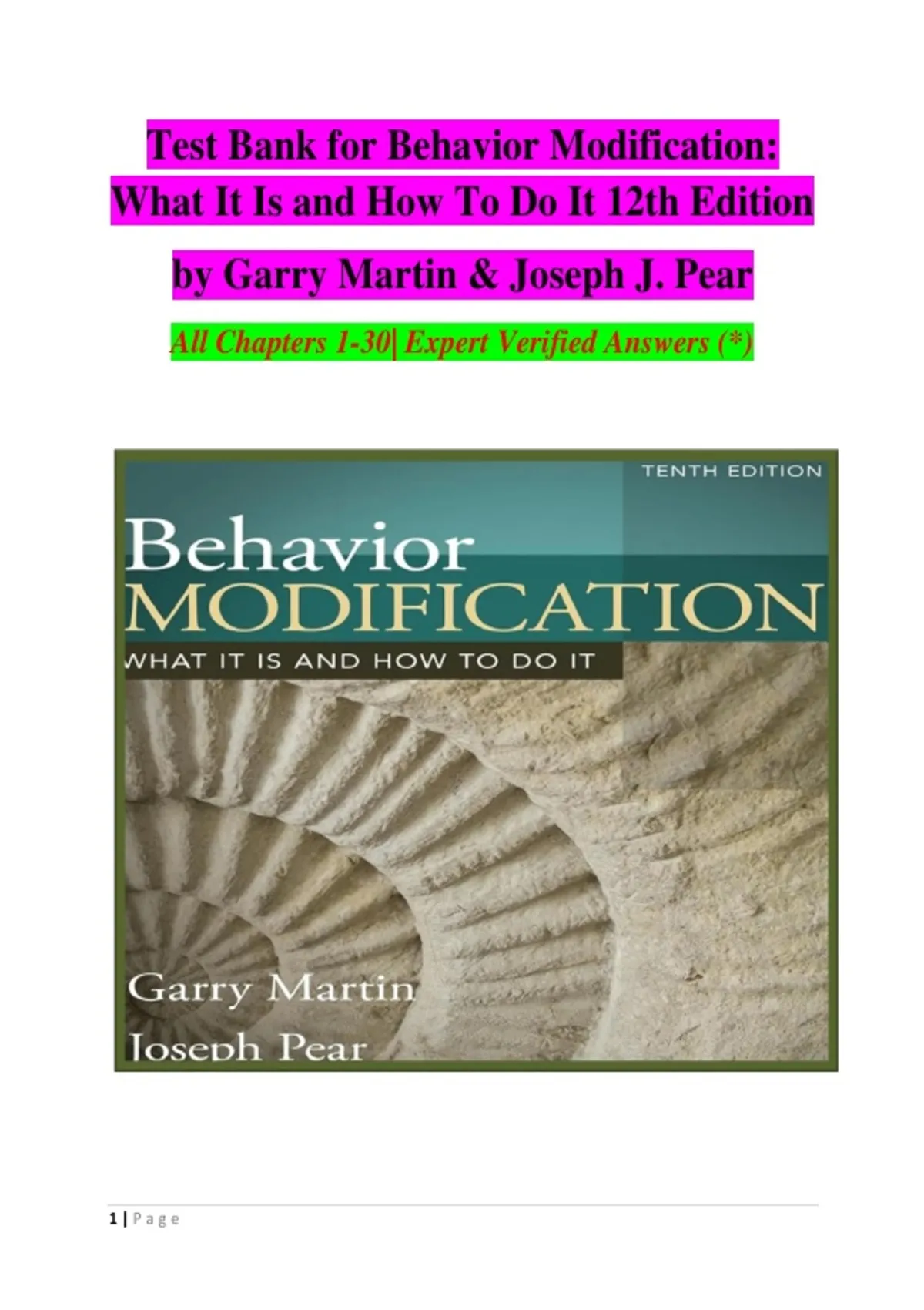 Test Bank for Behavior Modification: