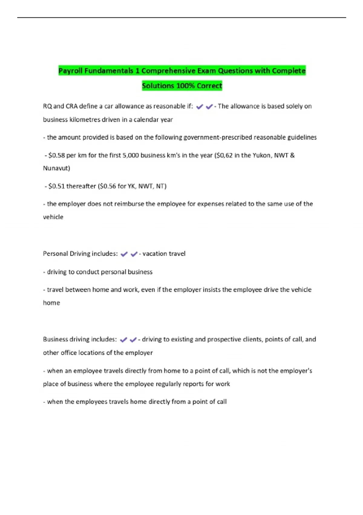 Payroll Fundamentals 1 Comprehensive Exam Questions with Complete Solutions 100% Correct