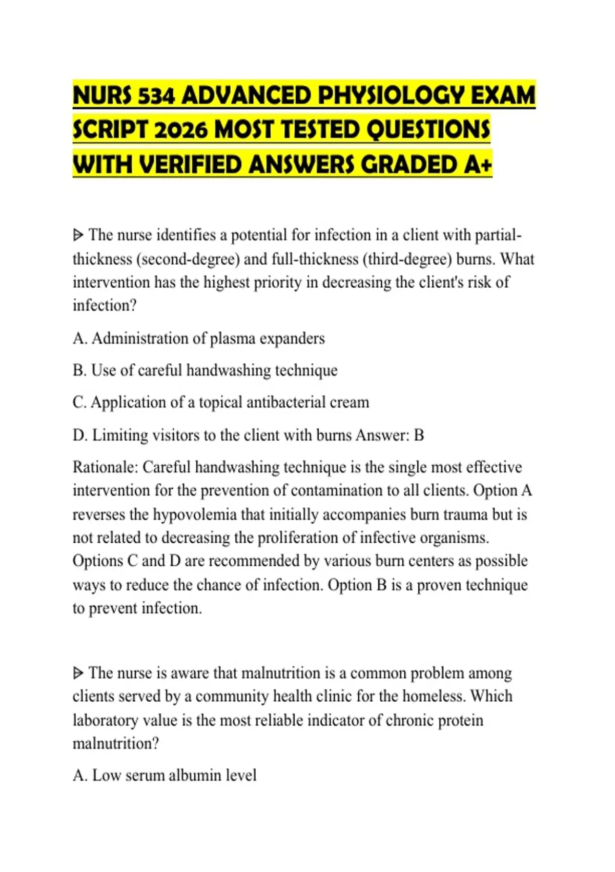 NURS 534 ADVANCED PHYSIOLOGY EXAM SCRIPT 2026 MOST TESTED QUESTIONS WITH VERIFIED ANSWERS GRADED A+
