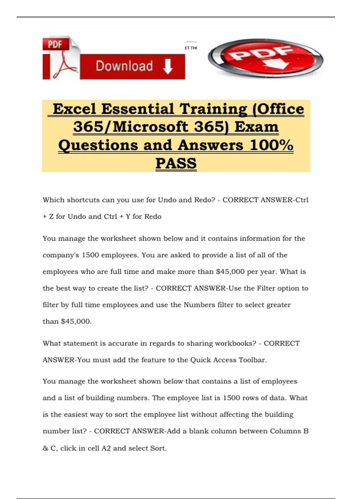 Excel Essential Training (Office 365/Microsoft 365) Exam Questions and Answers 100% PASS