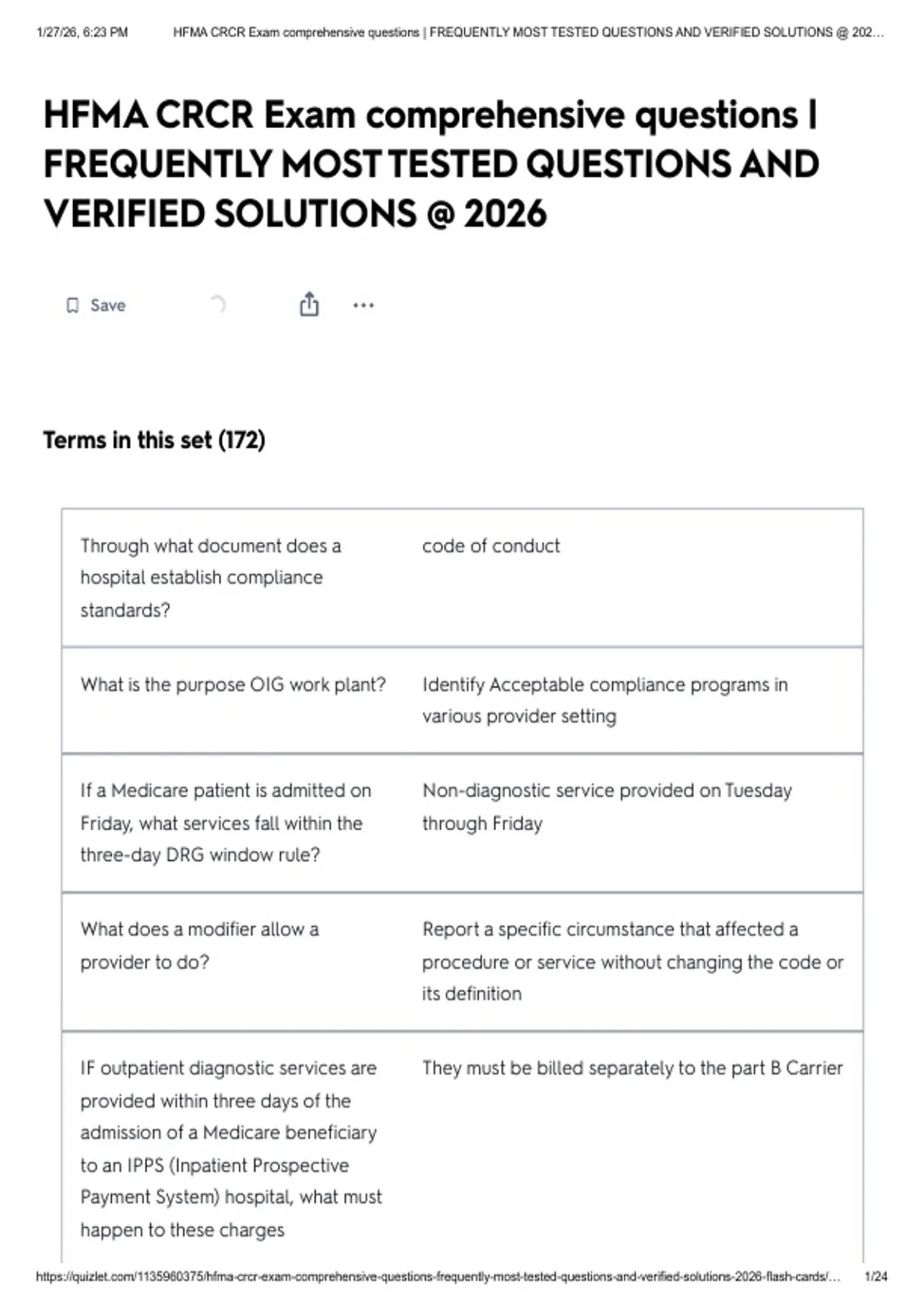 , 1/27/26, 6:23 PM HFMA CRCR Exam comprehensive questions | FREQUENTLY MOST TESTED QUESTIONS AND VERIFIED SOLUTIONS @ 202…