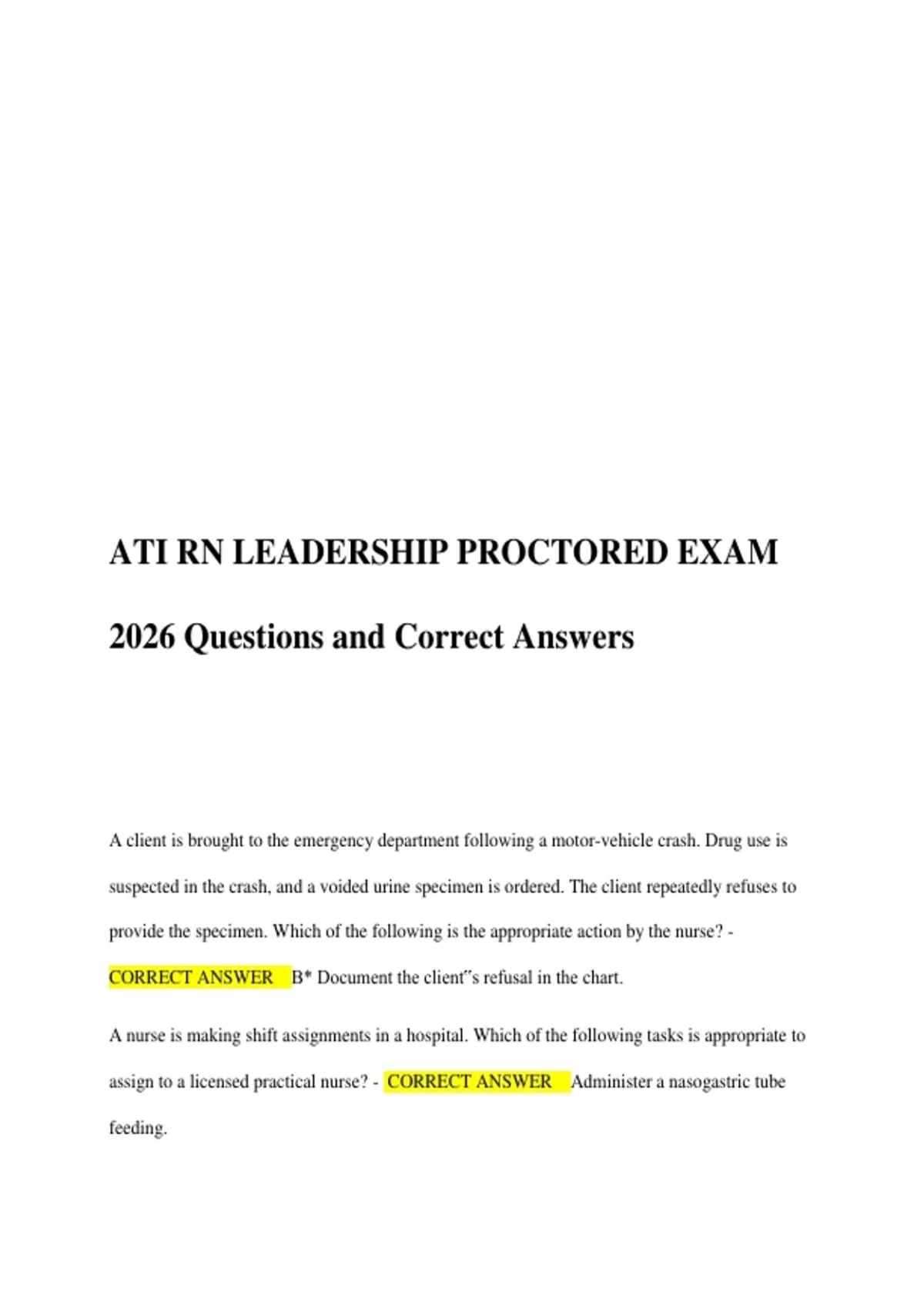 ATI RN LEADERSHIP PROCTORED EXAM 2026 Questions and Correct Answers
