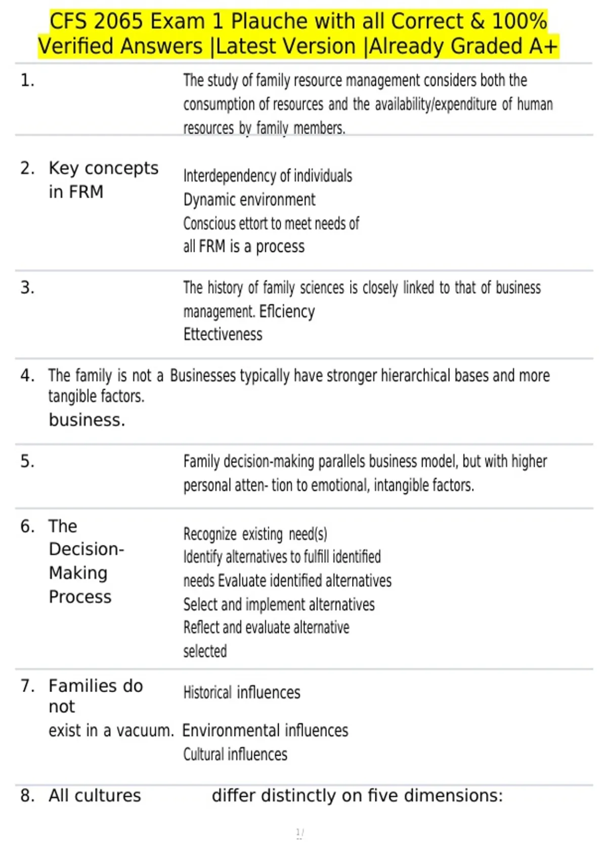 CFS 2065 Exam 1 Plauche with all Correct & 100% Verified Answers |Latest Version |Already Graded A+