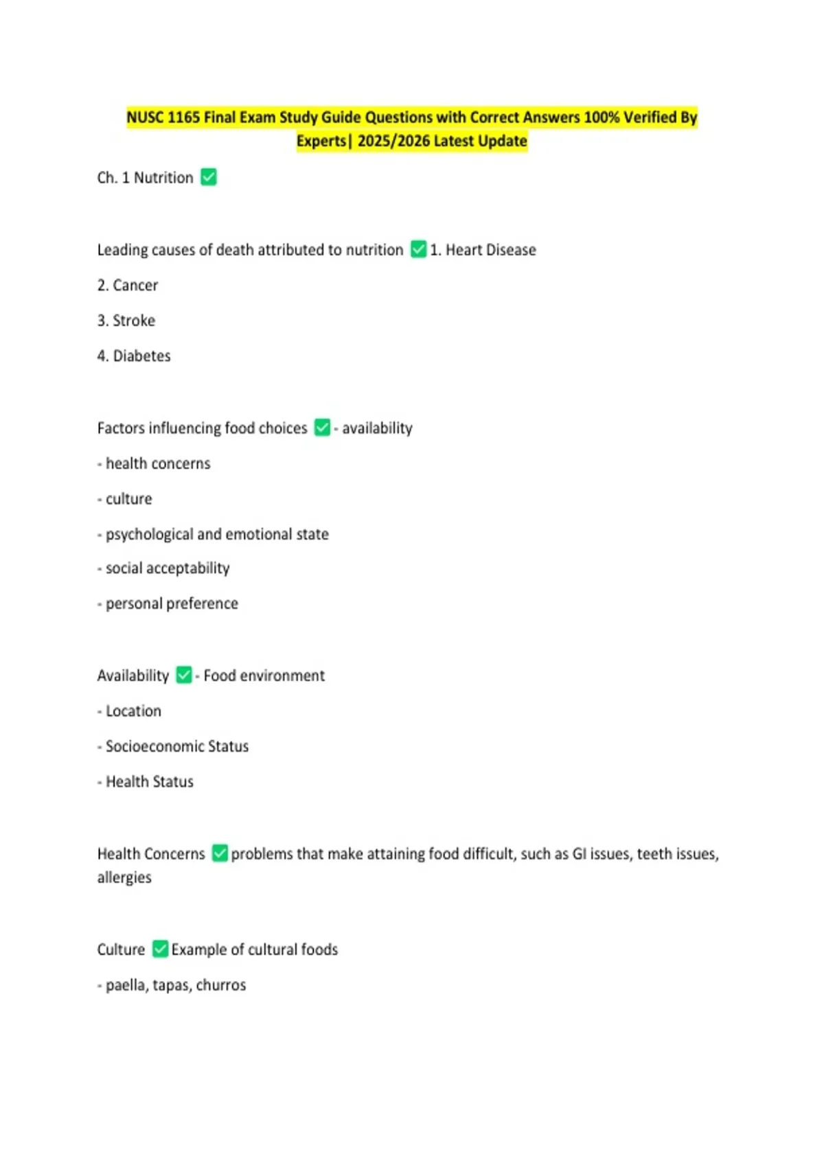 NUSC 1165 Final Exam Study Guide Questions with Correct Answers 100% Verified By