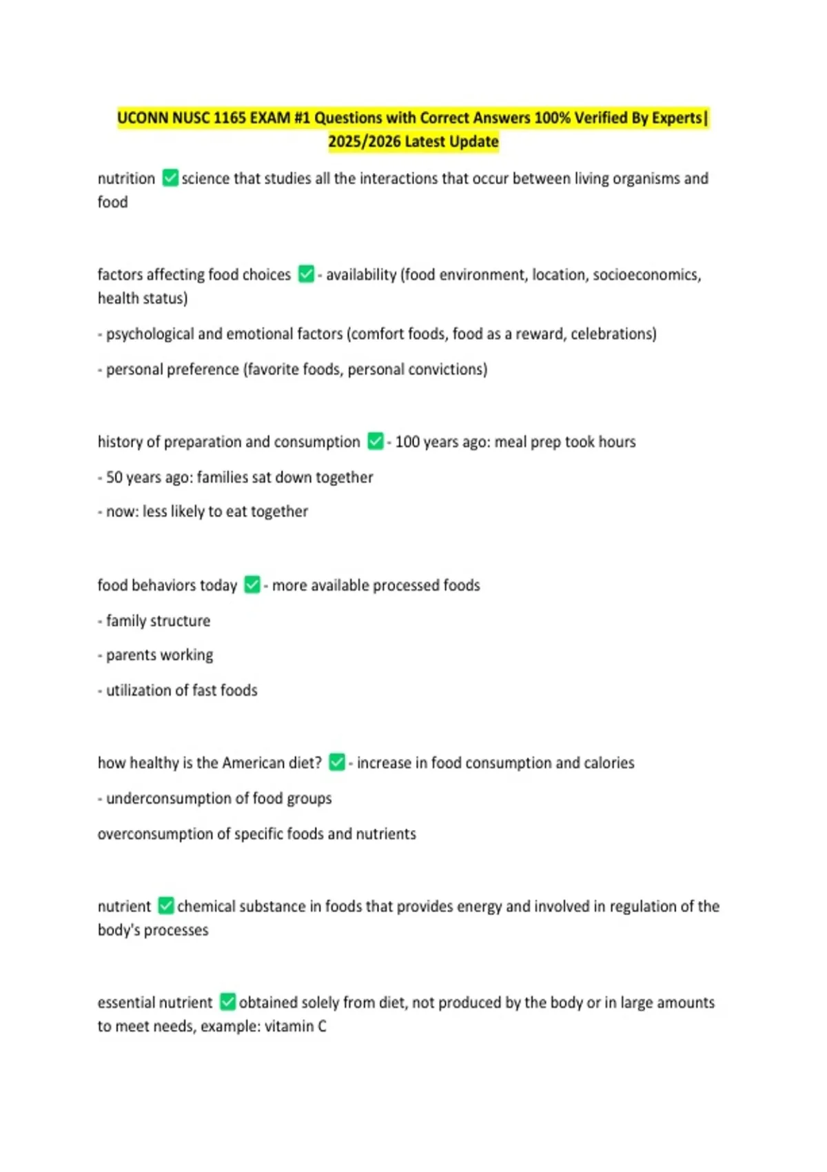 UCONN NUSC 1165 EXAM #1 Questions with Correct Answers 100% Verified By Experts