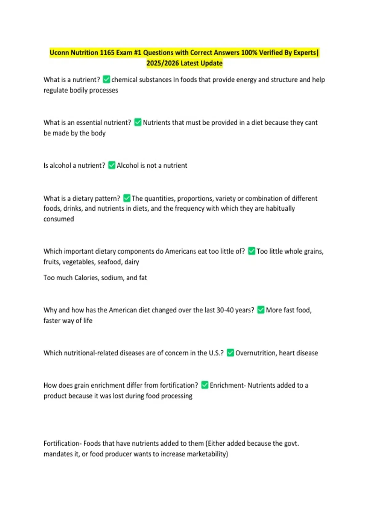 Uconn Nutrition 1165 Exam #1 Questions with Correct Answers 100% Verified By Experts
