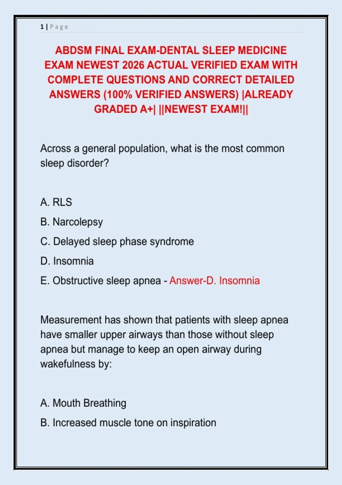 ABDSM FINAL EXAM-DENTAL SLEEP MEDICINE