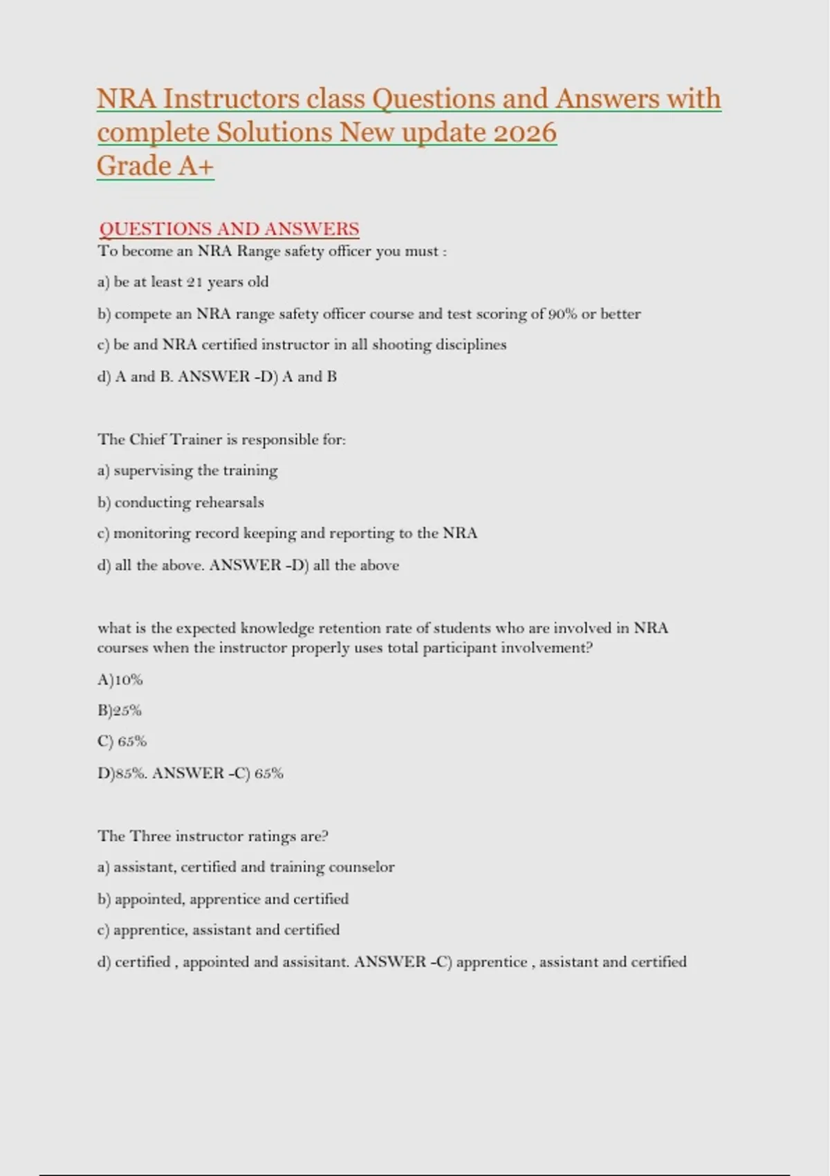 NRA Instructors class Questions and Answers with complete Solutions New update 2026. Graded A+