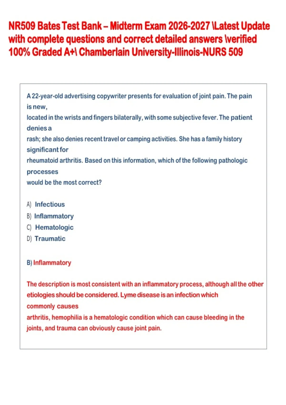 NR509 Bates Test Bank – Midterm Exam Latest Update with complete questions and correct detailed answers verified 100% Graded A+ Chamberlain University-Illinois-NURS 509 NR509 Bates Test Bank – Midterm Exam Latest Update with complete questions and correct detailed answers verified 100% Graded A+ Chamberlain University-Illinois-NURS 509 NR509 Bates Test Bank – Midterm Exam Latest Update with complete questions and correct detailed answers verified 100% Graded A+ Chamberlain University-Illinois-NURS 509 NR509 Bates Test Bank – Midterm Exam Latest Update with complete questions and correct detailed answers verified 100% Graded A+ Chamberlain University-Illinois-NURS 509 NR509 Bates Test Bank – Midterm Exam Latest Update with complete questions and correct detailed answers verified 100% Graded A+ Chamberlain University-Illinois-NURS 509 NR509 Bates Test Bank – Midterm Exam Latest Update with complete questions and correct detailed answers verified 100% Graded A+ Chamberlain University-Illinois-NURS 509 NR509 Bates Test Bank – Midterm Exam Latest Update with complete questions and correct detailed answers verified 100% Graded A+ Chamberlain University-Illinois-NURS 509 NR509 Bates Test Bank – Midterm Exam Latest Update with complete questions and correct detailed answers verified 100% Graded A+ Chamberlain University-Illinois-NURS 509 NR509 Bates Test Bank – Midterm Exam Latest Update with complete questions and correct detailed answers verified 100% Graded A+ Chamberlain University-Illinois-NURS 509 NR509 Bates Test Bank – Midterm Exam Latest Update with complete questions and correct detailed answers verified 100% Graded A+ Chamberlain University-Illinois-NURS 509 NR509 Bates Test Bank – Midterm Exam Latest Update with complete questions and correct detailed answers verified 100% Graded A+ Chamberlain University-Illinois-NURS 509 NR509 Bates Test Bank – Midterm Exam Latest Update with complete questions and correct detailed answers verified 100% Graded A+ Chamberlain University-Illinois-NURS 509 NR509 Bates Test Bank – Midterm Exam Latest Update with complete questions and correct detailed answers verified 100% Graded A+ Chamberlain University-Illinois-NURS 509 NR509 Bates Test Bank – Midterm Exam Latest Update with complete questions and correct detailed answers verified 100% Graded A+ Chamberlain University-Illinois-NURS 509 NR509 Bates Test Bank – Midterm Exam Latest Update with complete questions and correct detailed answers verified 100% Graded A+ Chamberlain University-Illinois-NURS 509