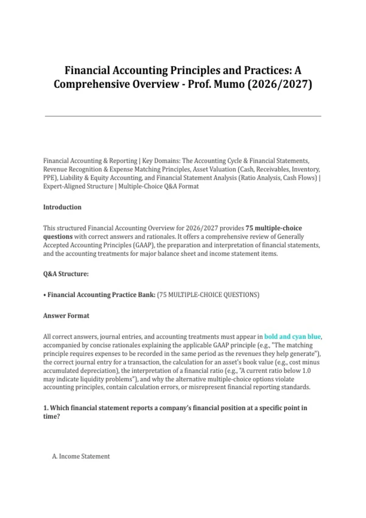 This structured Financial Accounting Overview for 2026/2027 provides 75 multiple-choice