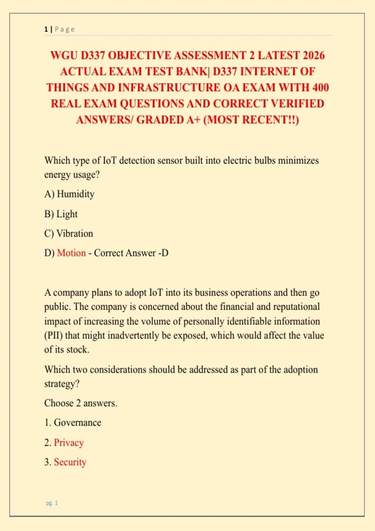 ACTUAL EXAM TEST BANK| D337 INTERNET OF