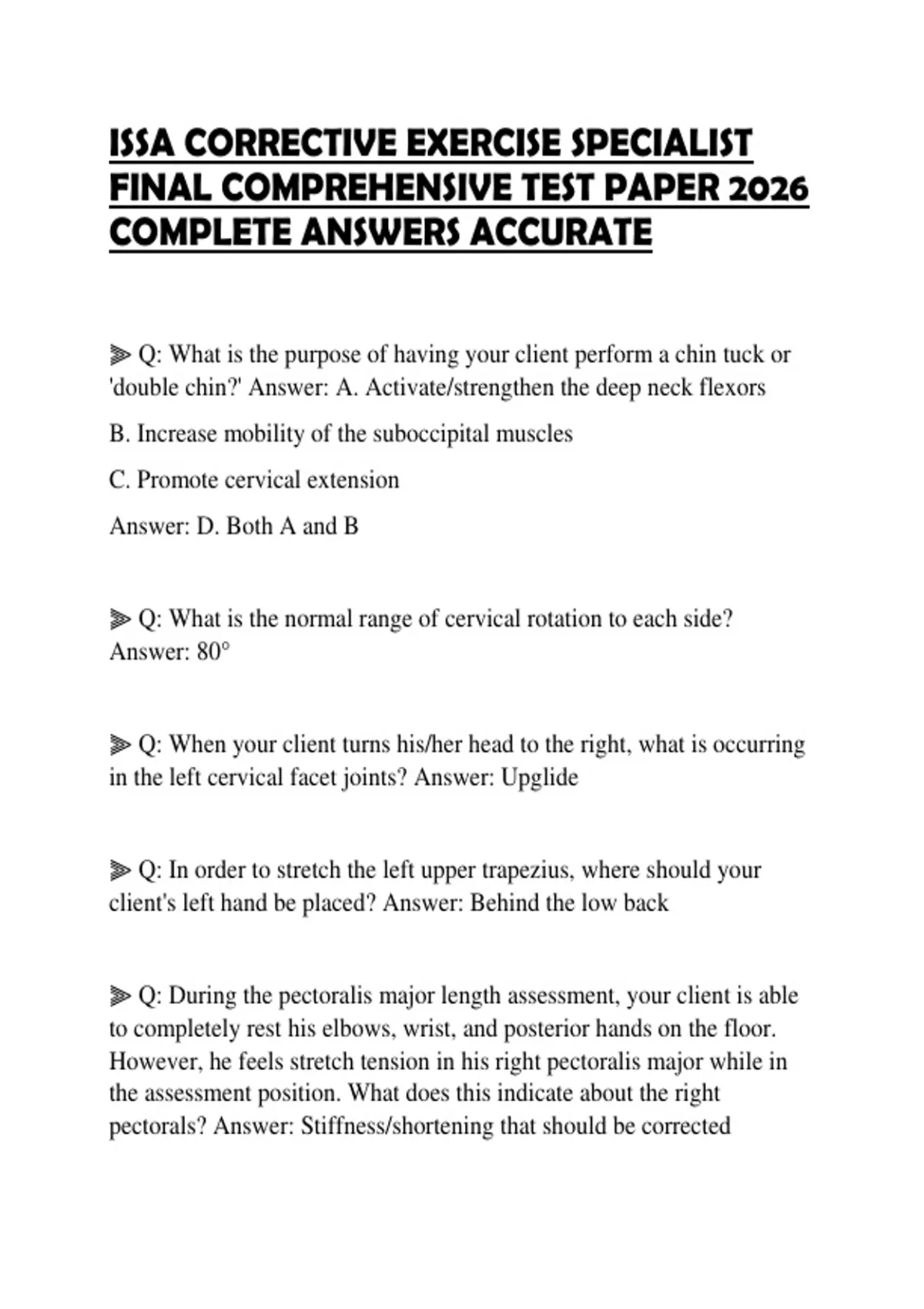 ISSA CORRECTIVE EXERCISE SPECIALIST FINAL COMPREHENSIVE TEST PAPER 2026 COMPLETE ANSWERS ACCURATE