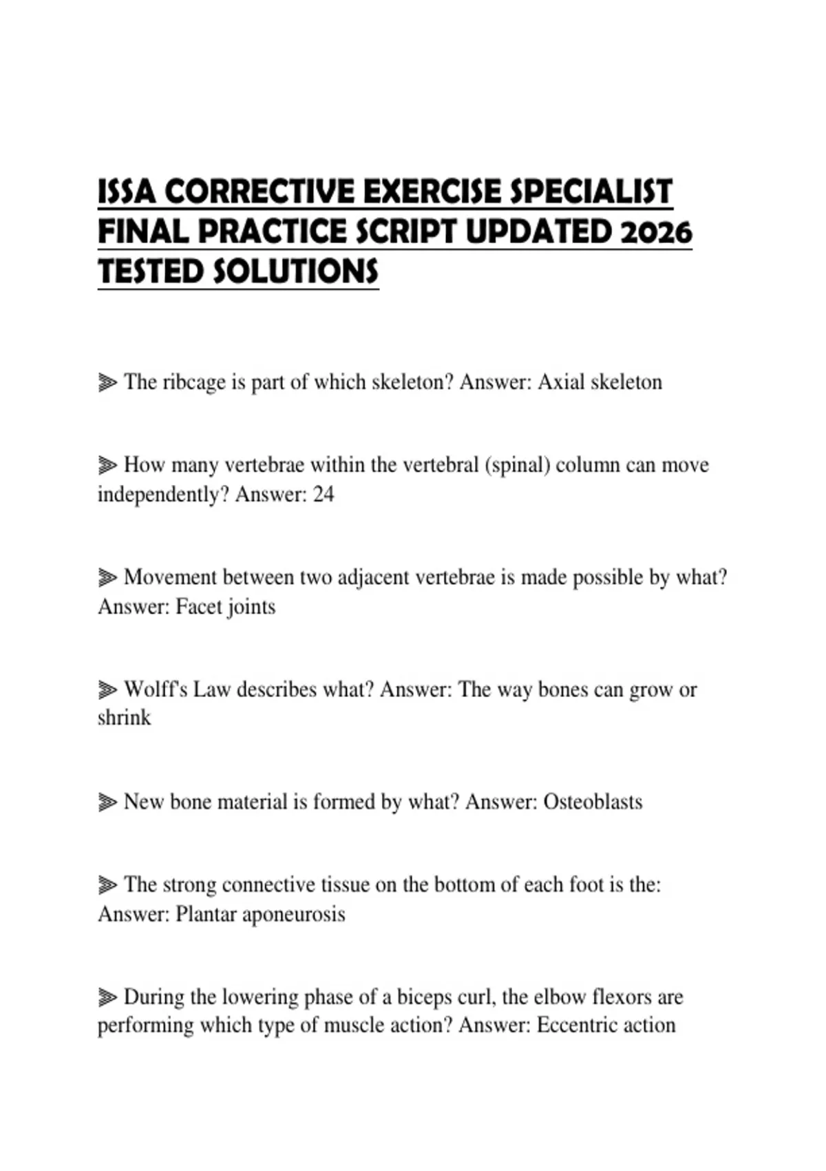ISSA CORRECTIVE EXERCISE SPECIALIST FINAL PRACTICE SCRIPT UPDATED 2026 TESTED SOLUTIONS
