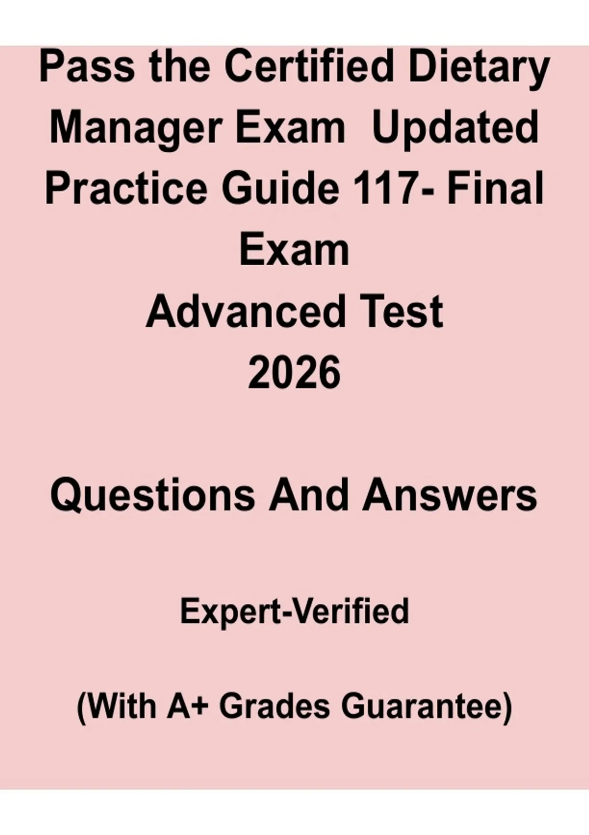 This Certified Dietary Manager (CDM) Exam Final Practice Guide features updated questions and answers to help candidates prepare for the 2026 CDM certification exam. Covers critical topics such as nutrition management, food safety, menu planning, healthcare dietary operations, and regulatory compliance. Ideal for last-minute review and confident exam success.