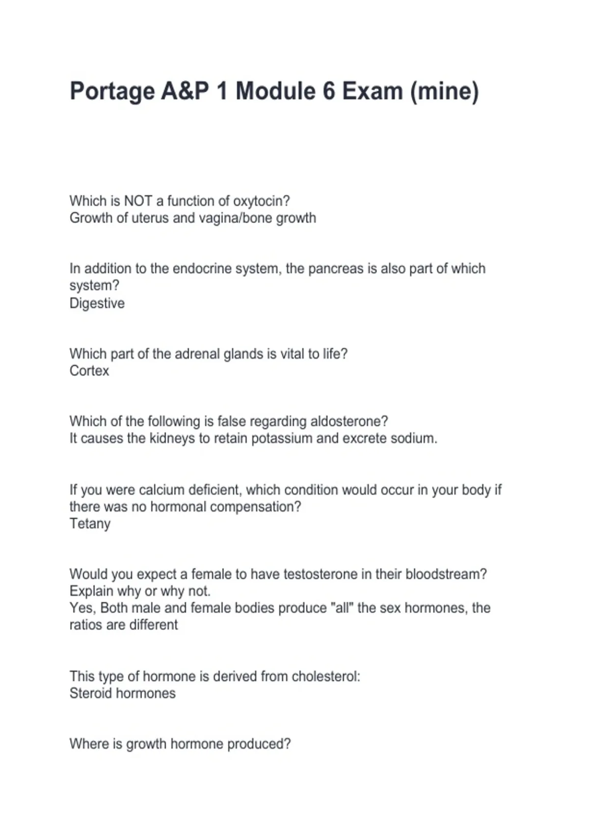 Portage A&P 1 Module 6 Exam (mine) Portage A&P 1 Module 6 Exam (mine) Page 1