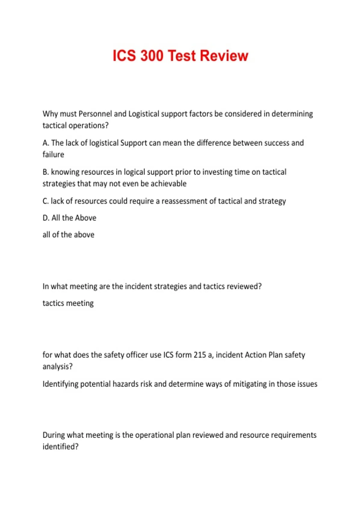 , Review Study Guide 2026 | Questions & AnswersICS 300 Test Review Page 2 of 9 Page 2