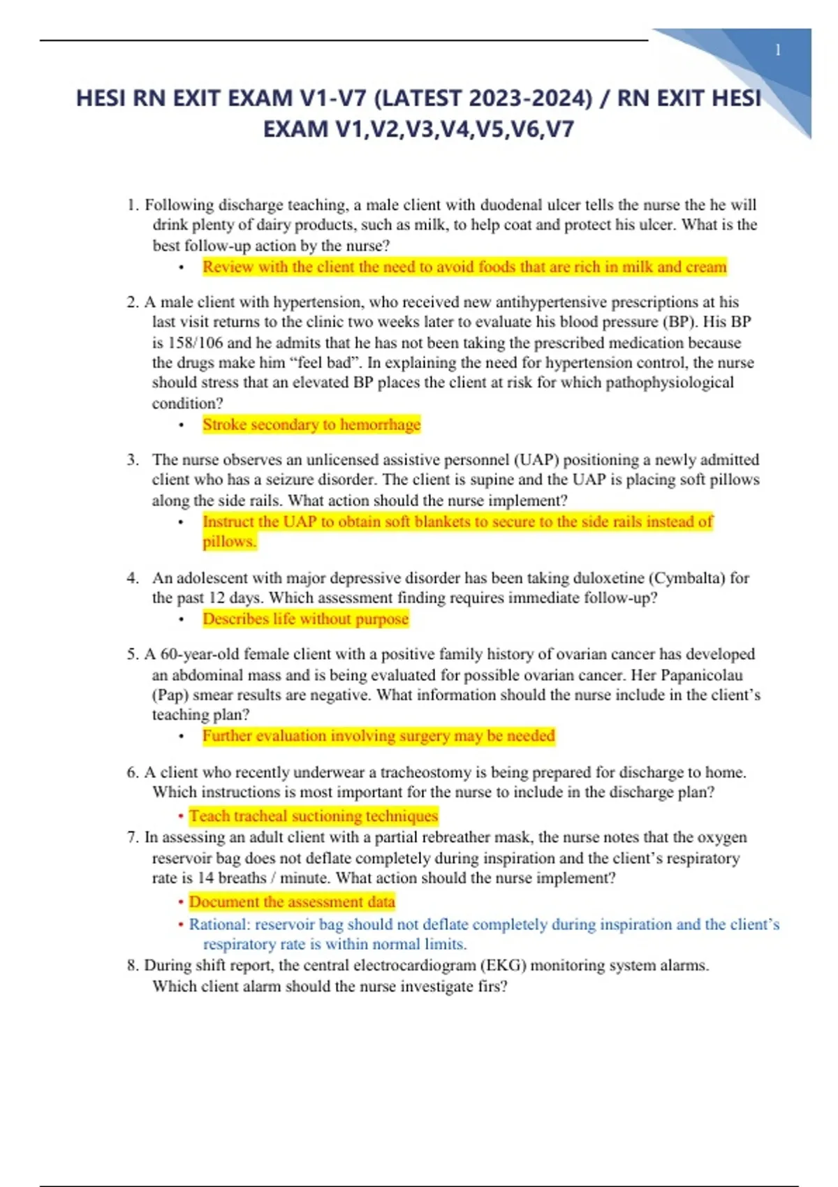 Hesi rn exit exam v1 v7 latest 2023 2024 Hesi rn exit exam v1 v7 latest 2023 2024 Page 1