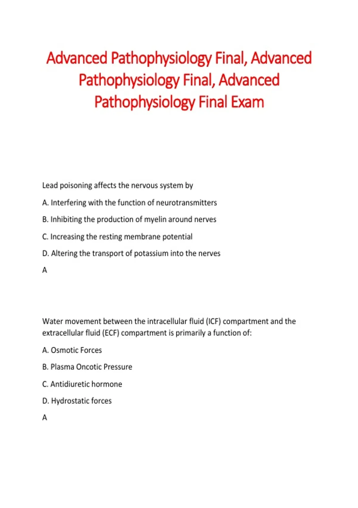 Master complex disease mechanisms with Advanced Pathophysiology Final Exam 2025/2026 with Solution, featuring complete questions and answers to enhance understanding, clinical reasoning, and exam performance.