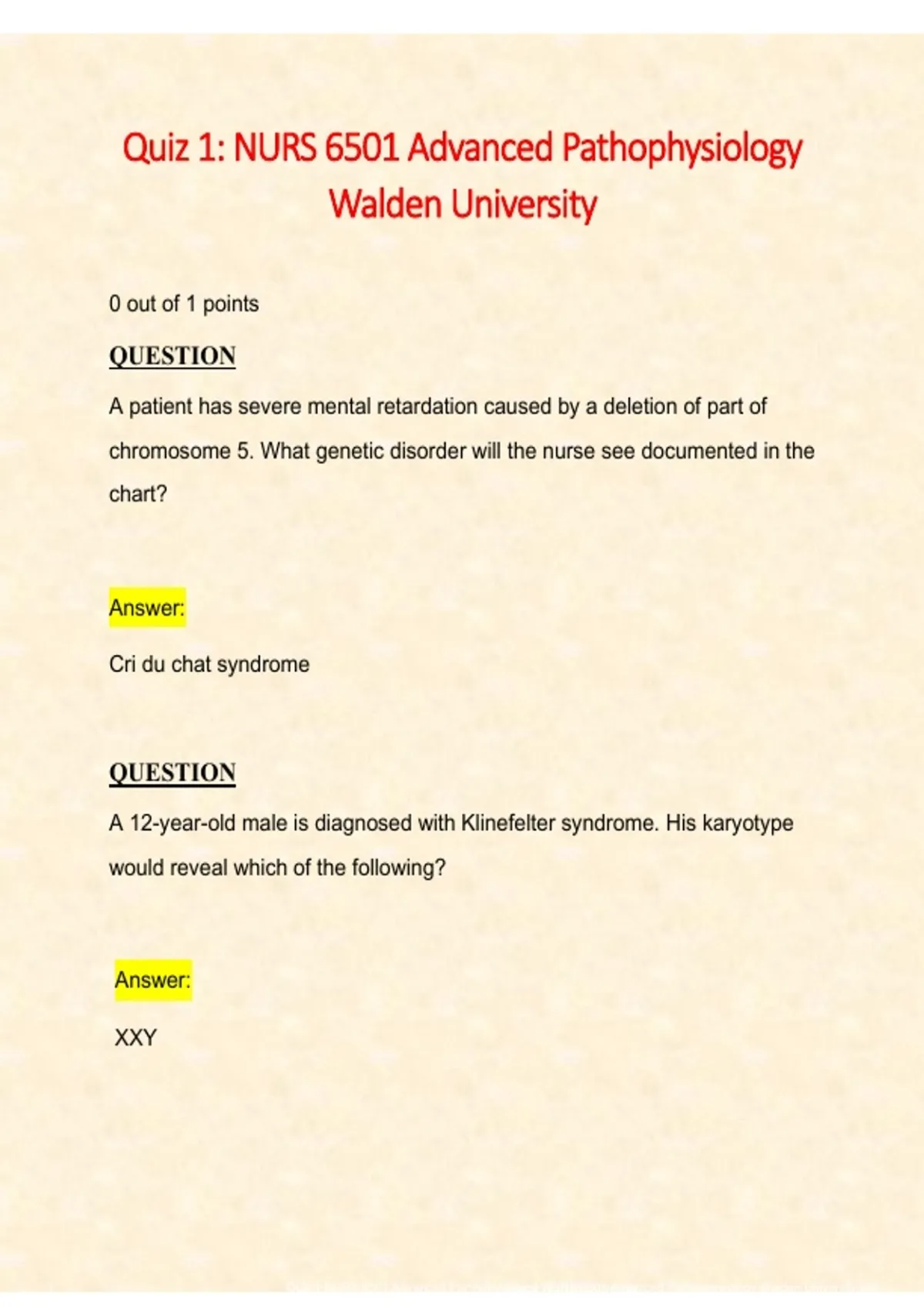 Prepare and excel in NURS 6501 Advanced Pathophysiology Quiz 1 Walden University 2025/2026 with Solution, featuring complete questions and answers to master critical pathophysiology concepts and achieve top quiz performance.