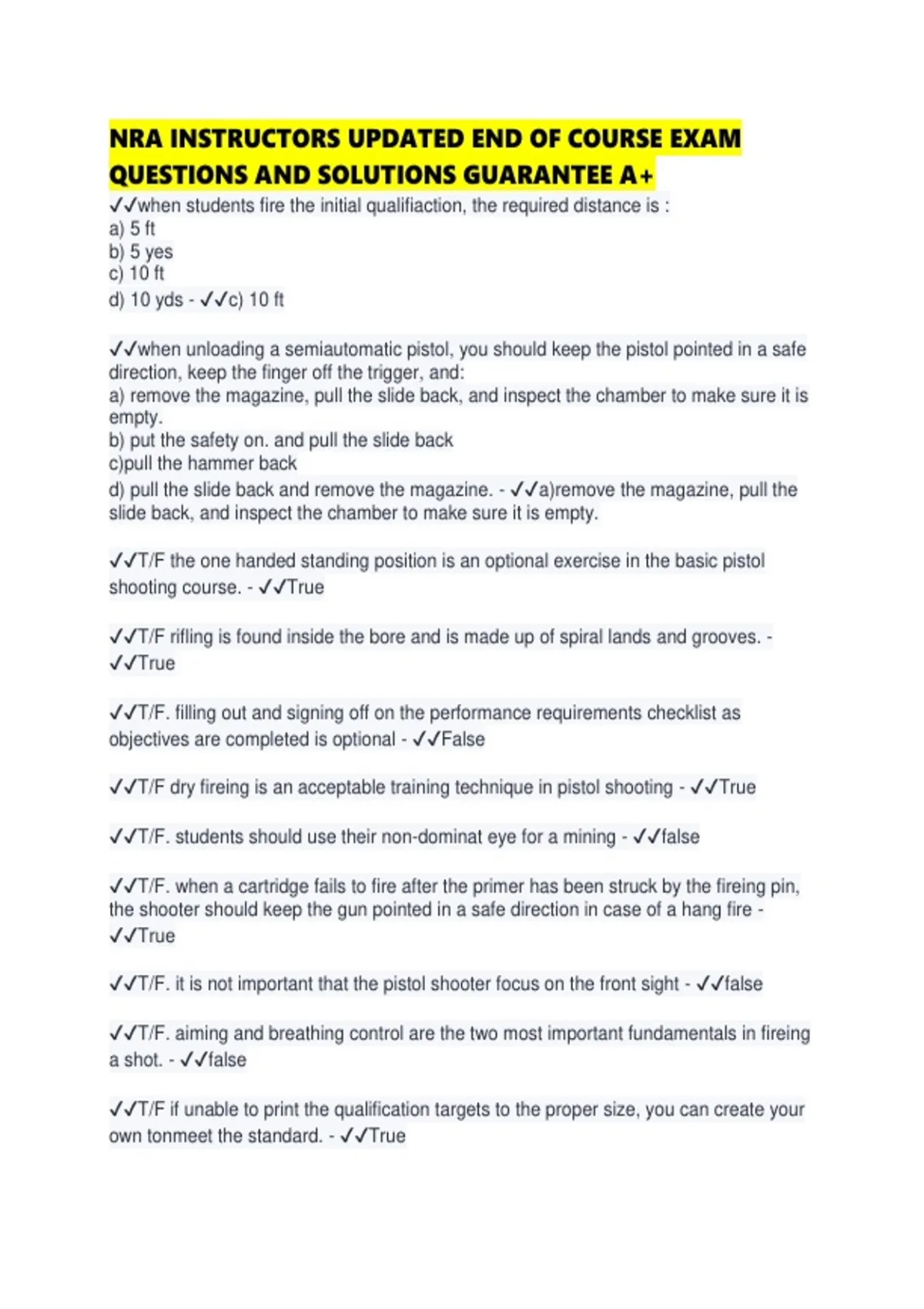 NRA INSTRUCTORS UPDATED END OF COURSE EXAM QUESTIONS AND SOLUTIONS GUARANTEE
