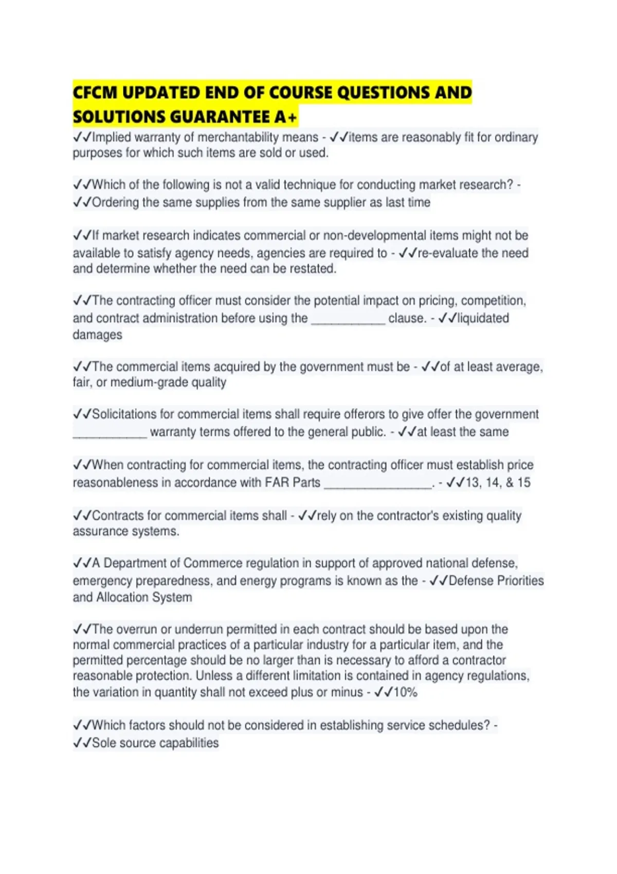 CFCM UPDATED END OF COURSE QUESTIONS AND SOLUTIONS GUARANTEE