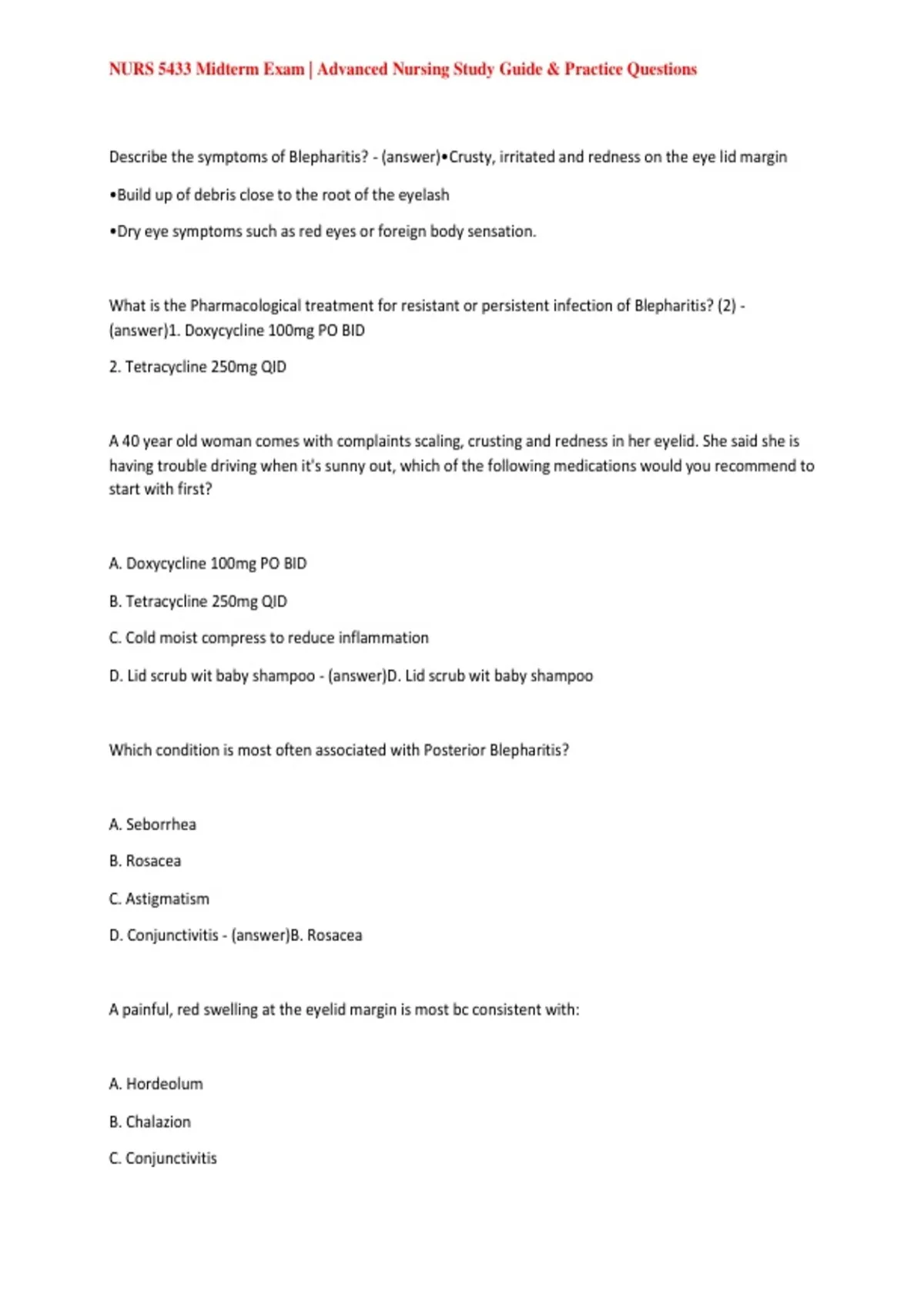 D. Conjunctivitis - (answer)B. Rosacea