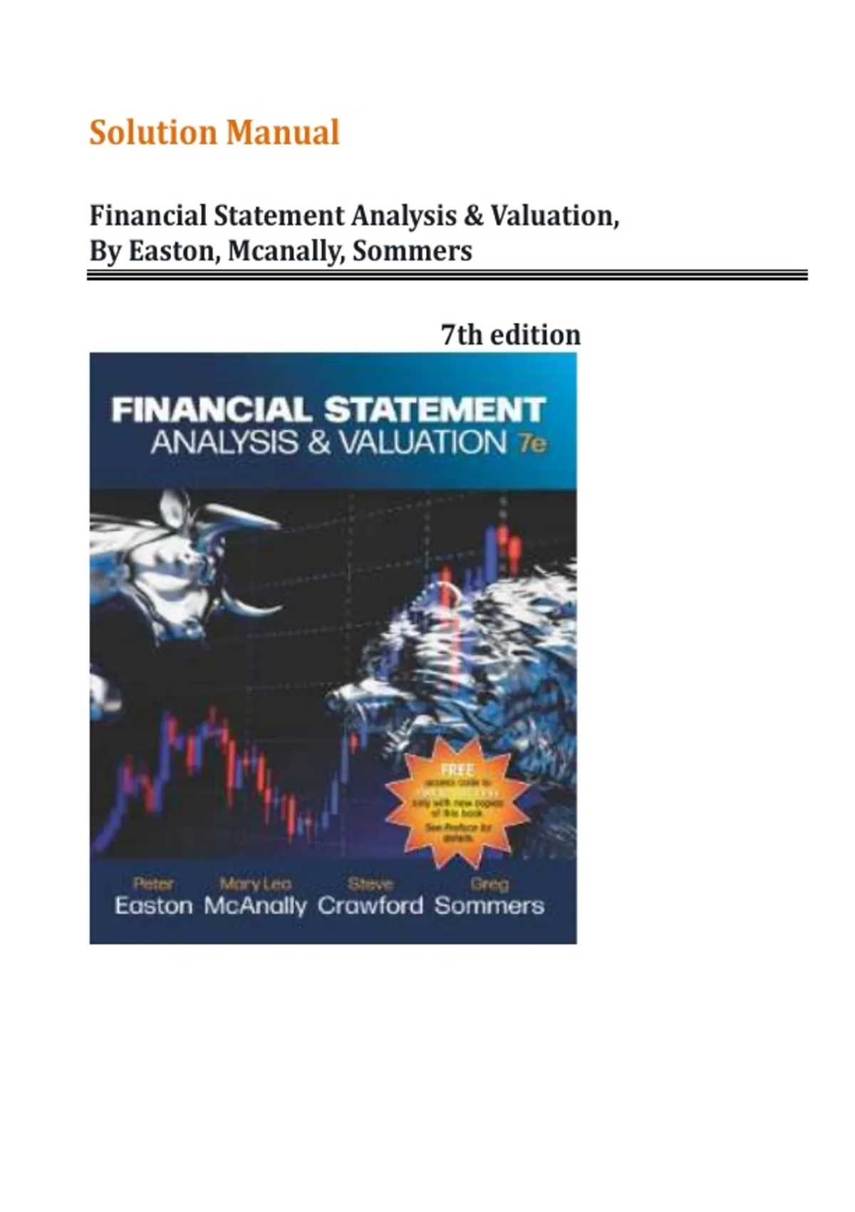 Solution Manual For Financial Statement Analysis & Valuation, 7th Edition by Easton, McAnally, Sommers|| All Chapters| Verified Solutions A+