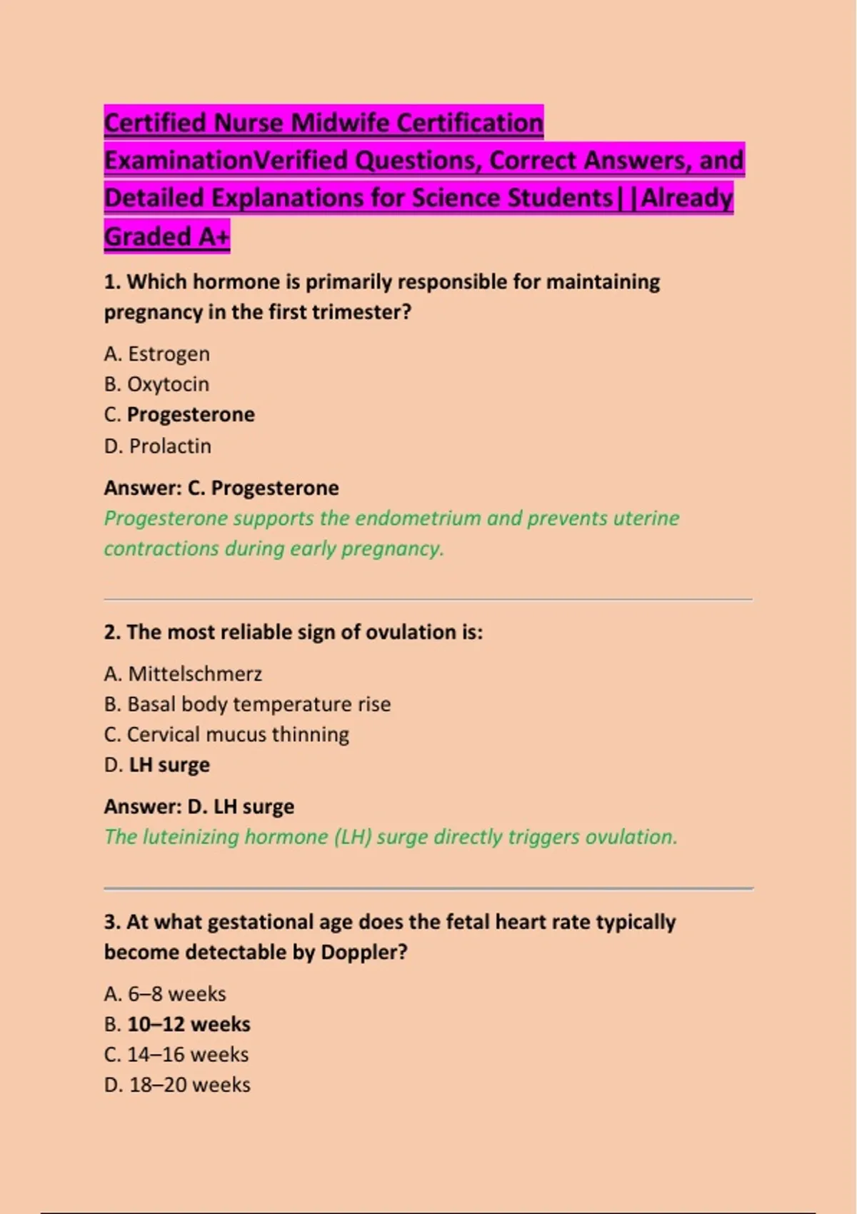 Certified Nurse Midwife Certification ExaminationVerified Questions, Correct Answers, and Detailed Explanations for Science Students||Already Graded A+