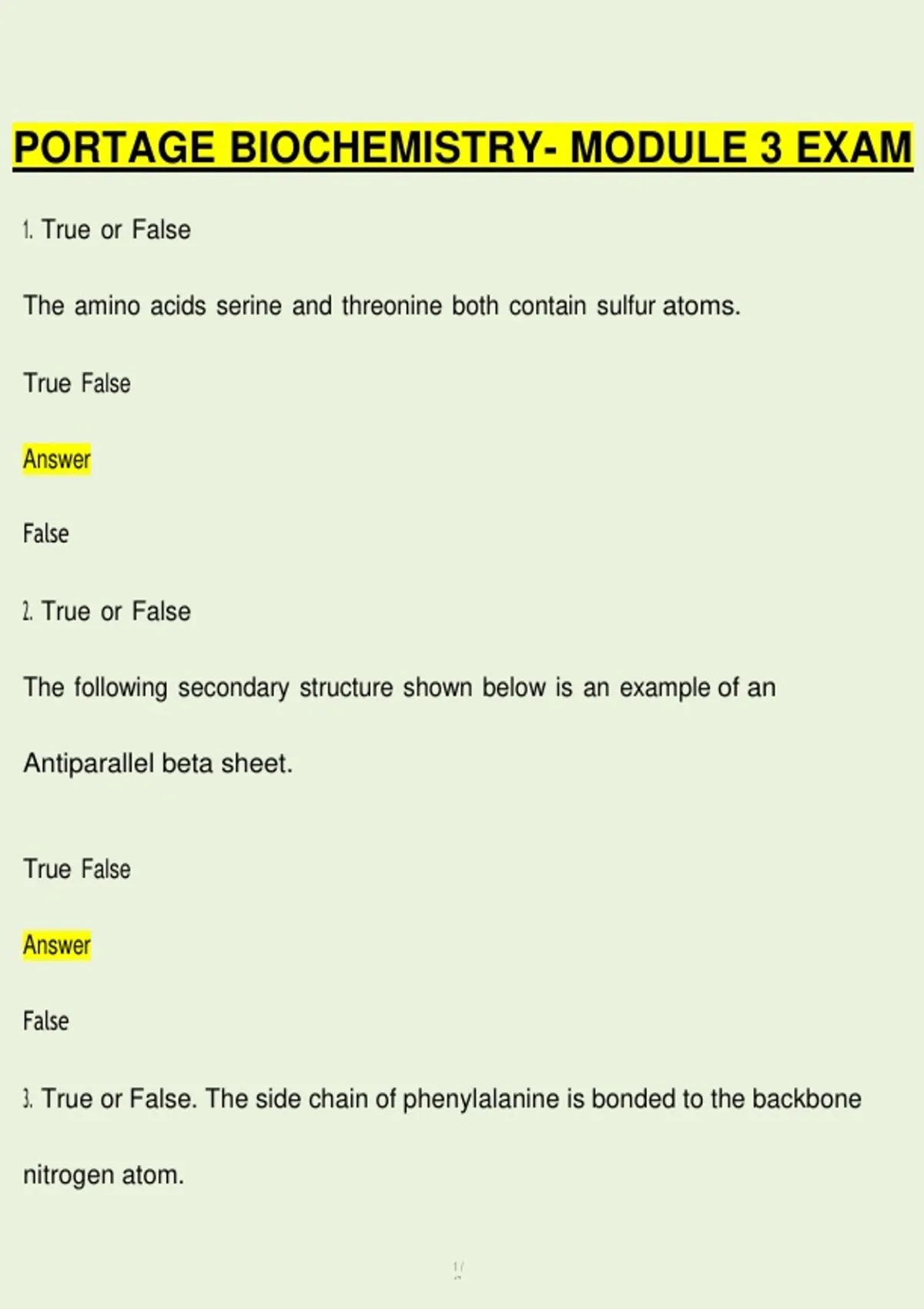 3. True or False. The side chain of phenylalanine is bonded to the backbone