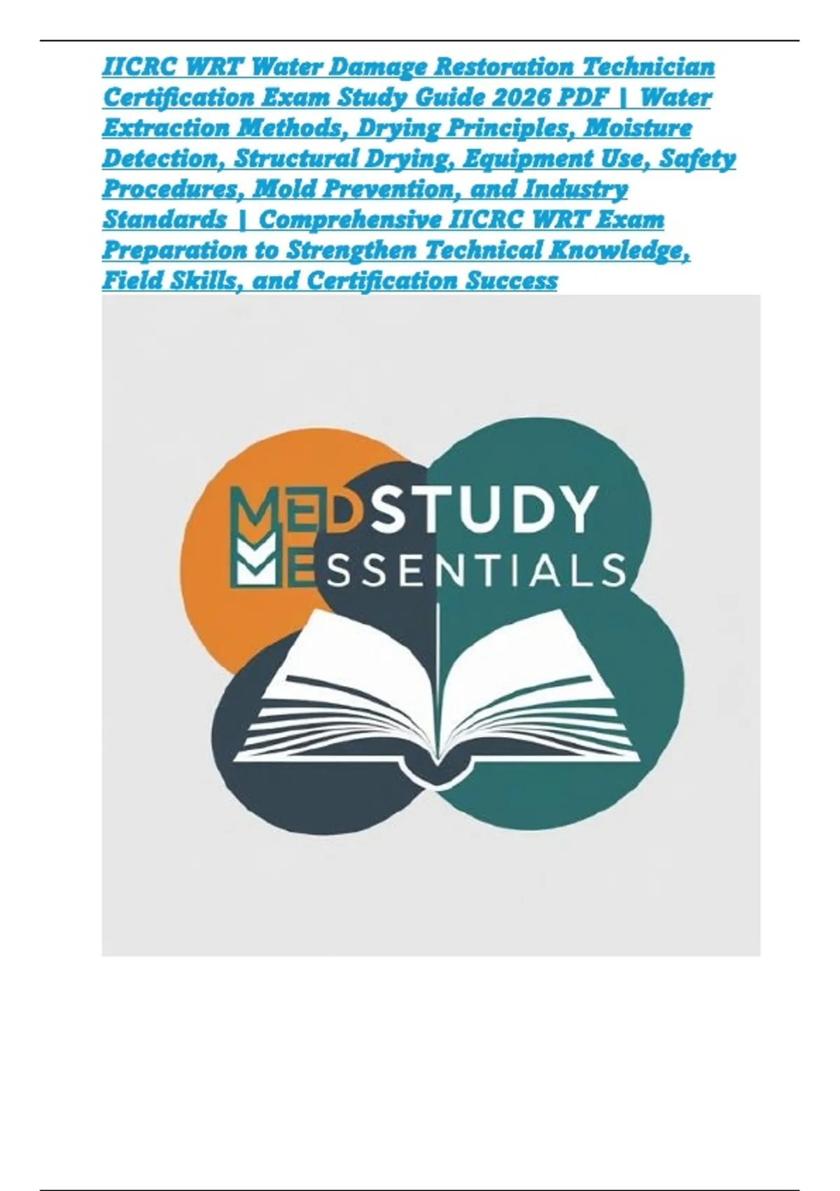 IICRC WRT Water Damage Restoration Technician Certification Exam Study Guide 2026 PDF | Water Extraction Methods, Drying Principles, Moisture Detection, Structural Drying, Equipment Use, Safety Procedures, Mold Prevention, and Industry Standards | Compreh