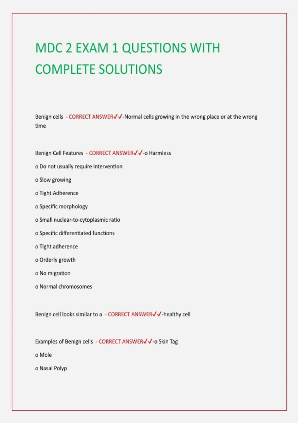 Benign Cell Features - CORRECT ANSWER✔✔-o Harmless