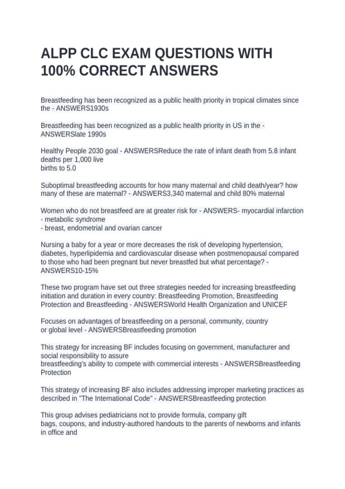 ALPP CLC EXAM QUESTIONS WITH 100% CORRECT ANSWERS
