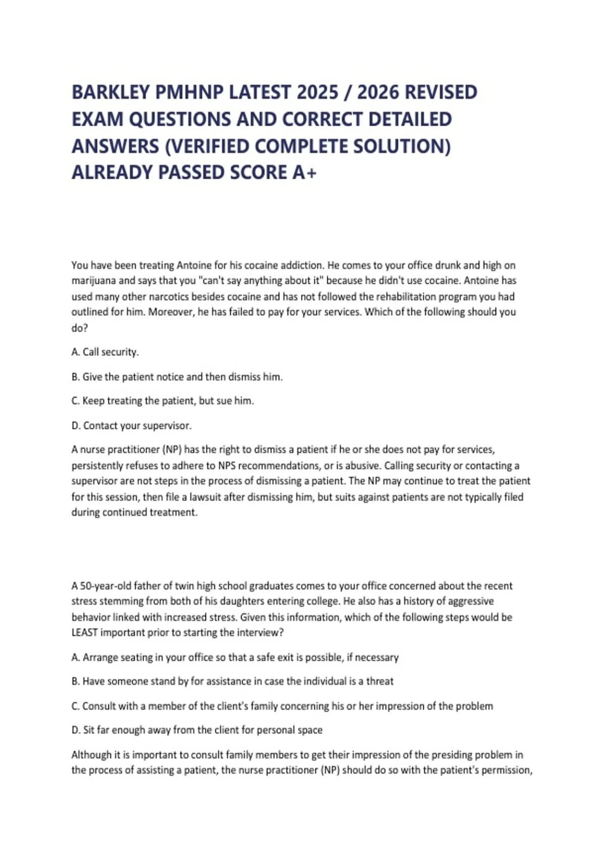 , Test Bank 2026: -BARKLEY PMHNP LATEST 2025 - 2026 REVISED EXAM