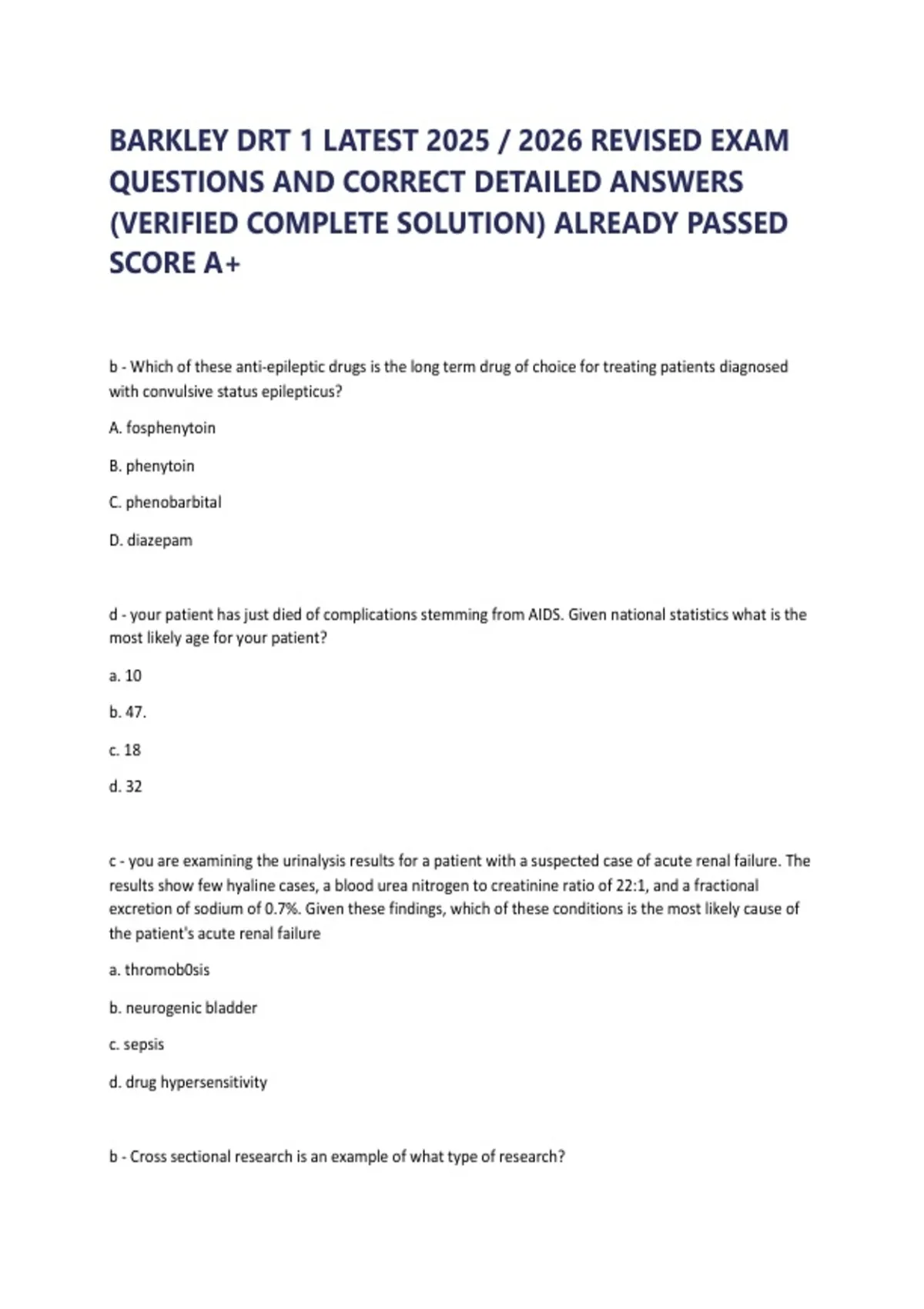 Test Bank 2026: -BARKLEY DRT 1 LATEST 2025 - 2026 REVISED EXAM