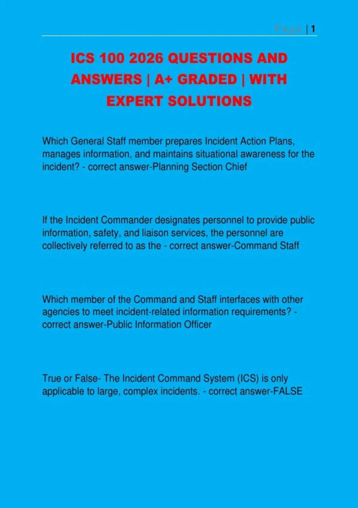 applicable to large, complex incidents. - correct answer-FALSE