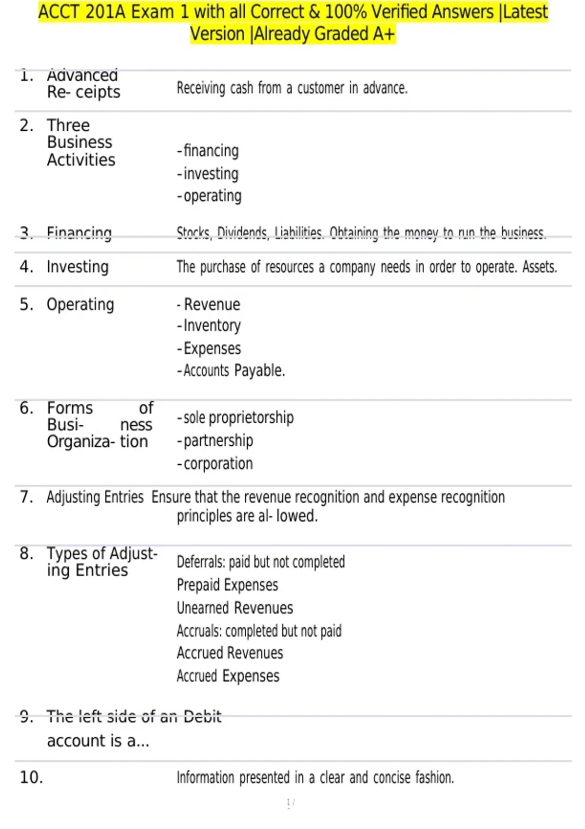 , ACCT 201A Exam 1 with all Correct & 100% Verified Answers |Latest
