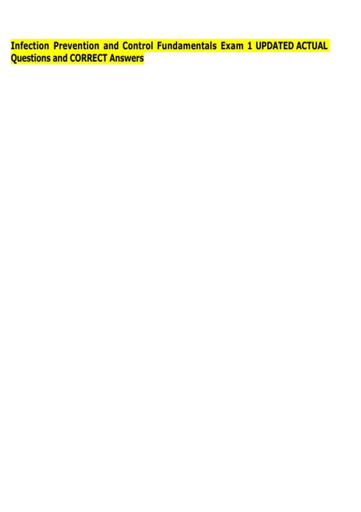 Infection Prevention and Control Fundamentals Exam 1 UPDATED ACTUAL Questions and CORRECT Answers
