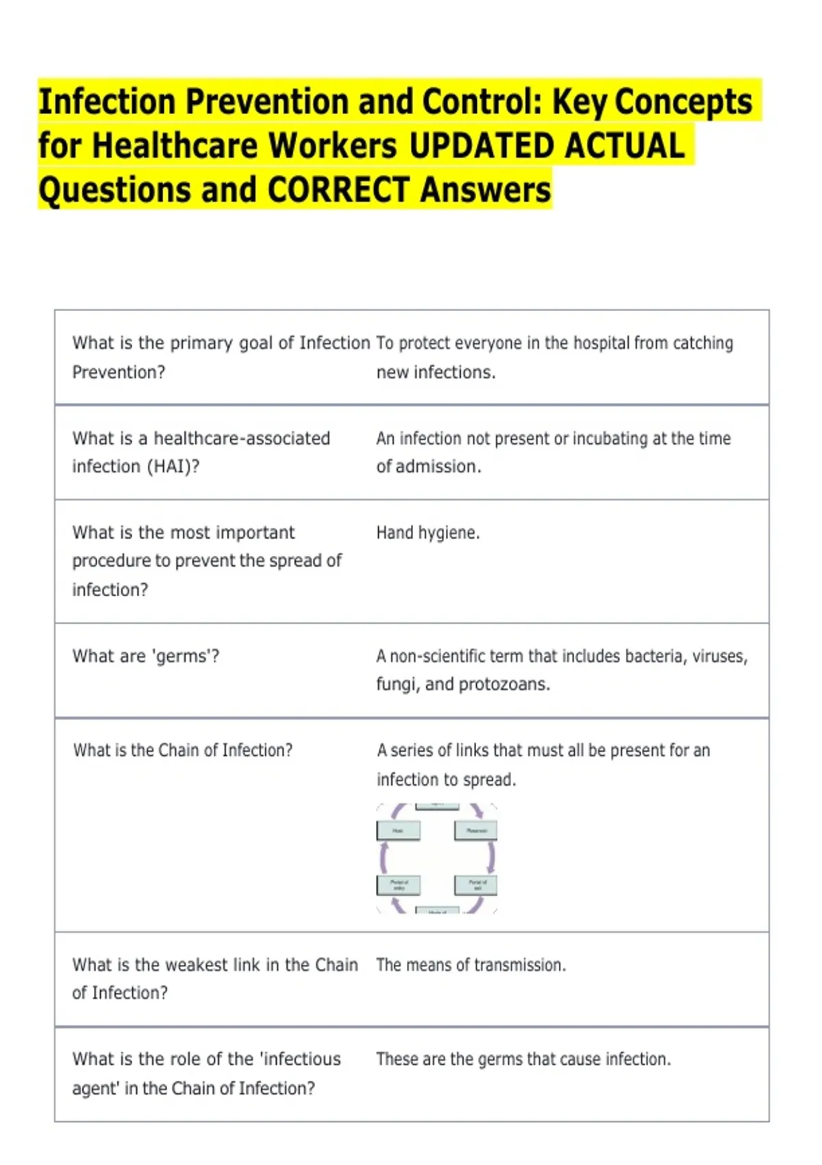 Infection Prevention and Control: Key Concepts for Healthcare Workers UPDATED ACTUAL Questions and CORRECT Answers
