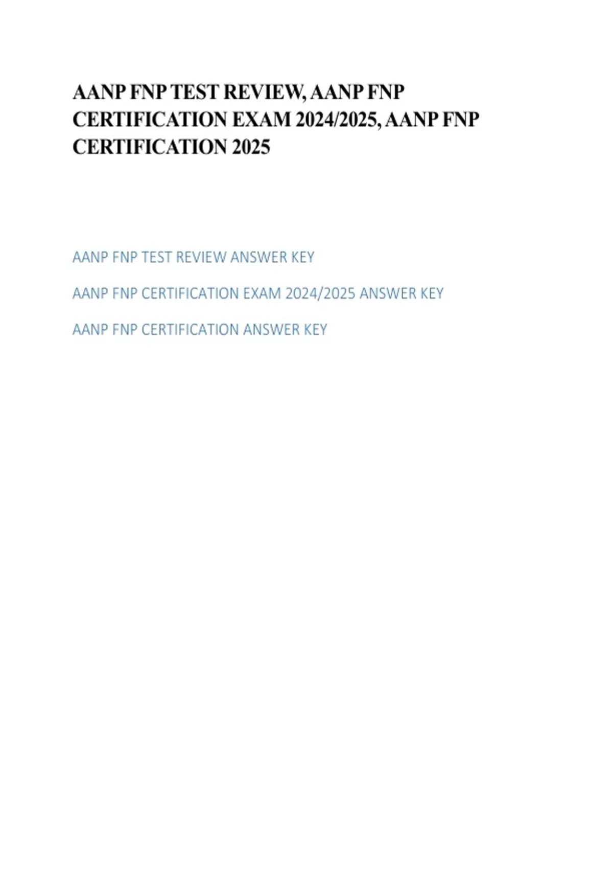 AANP FNP Test Review – Certification Exam 2024–2025 | Verified Questions & Answers