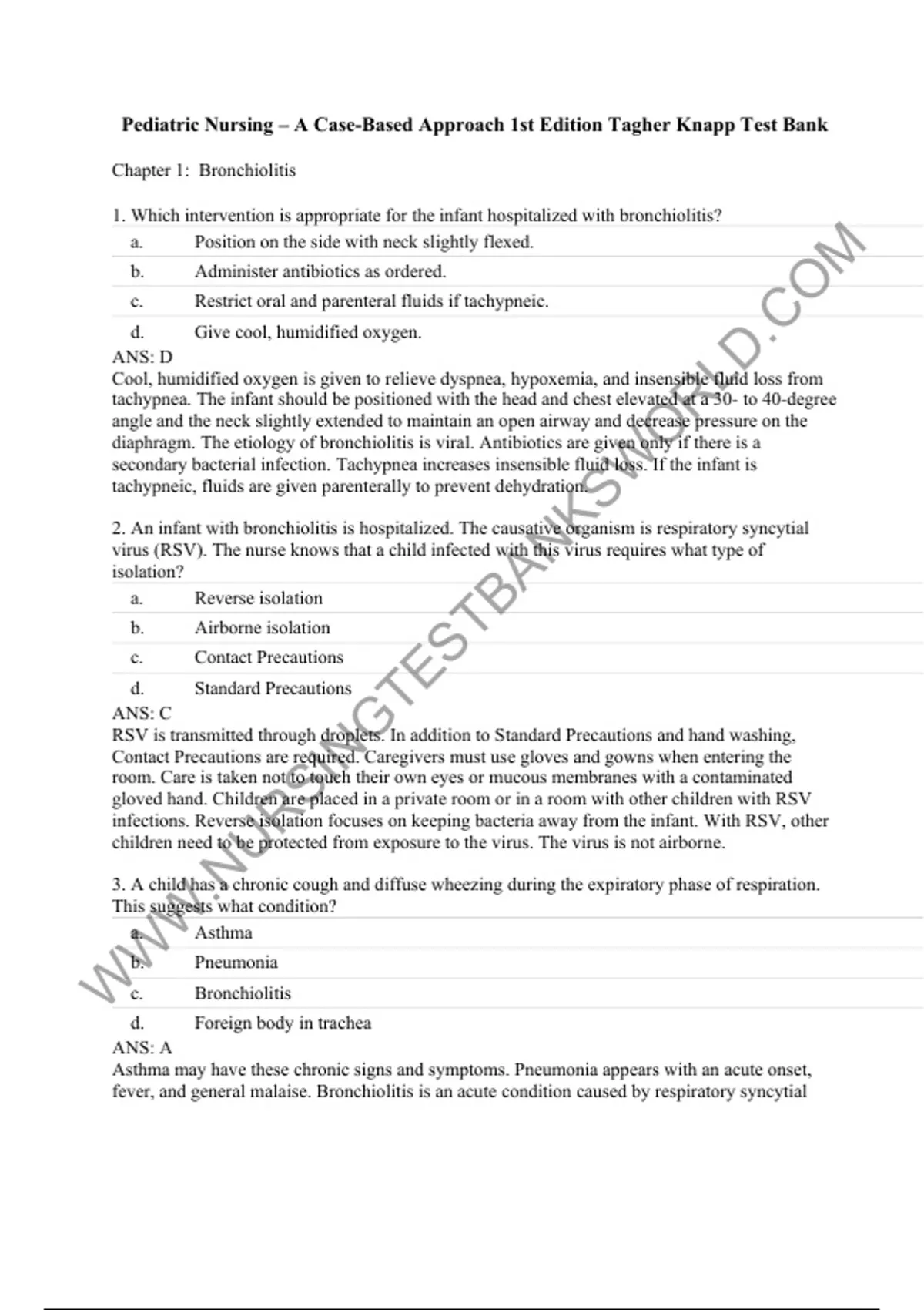 More Test Banks, Nursing Materials Visit: WWW.NURSYLAB.COM